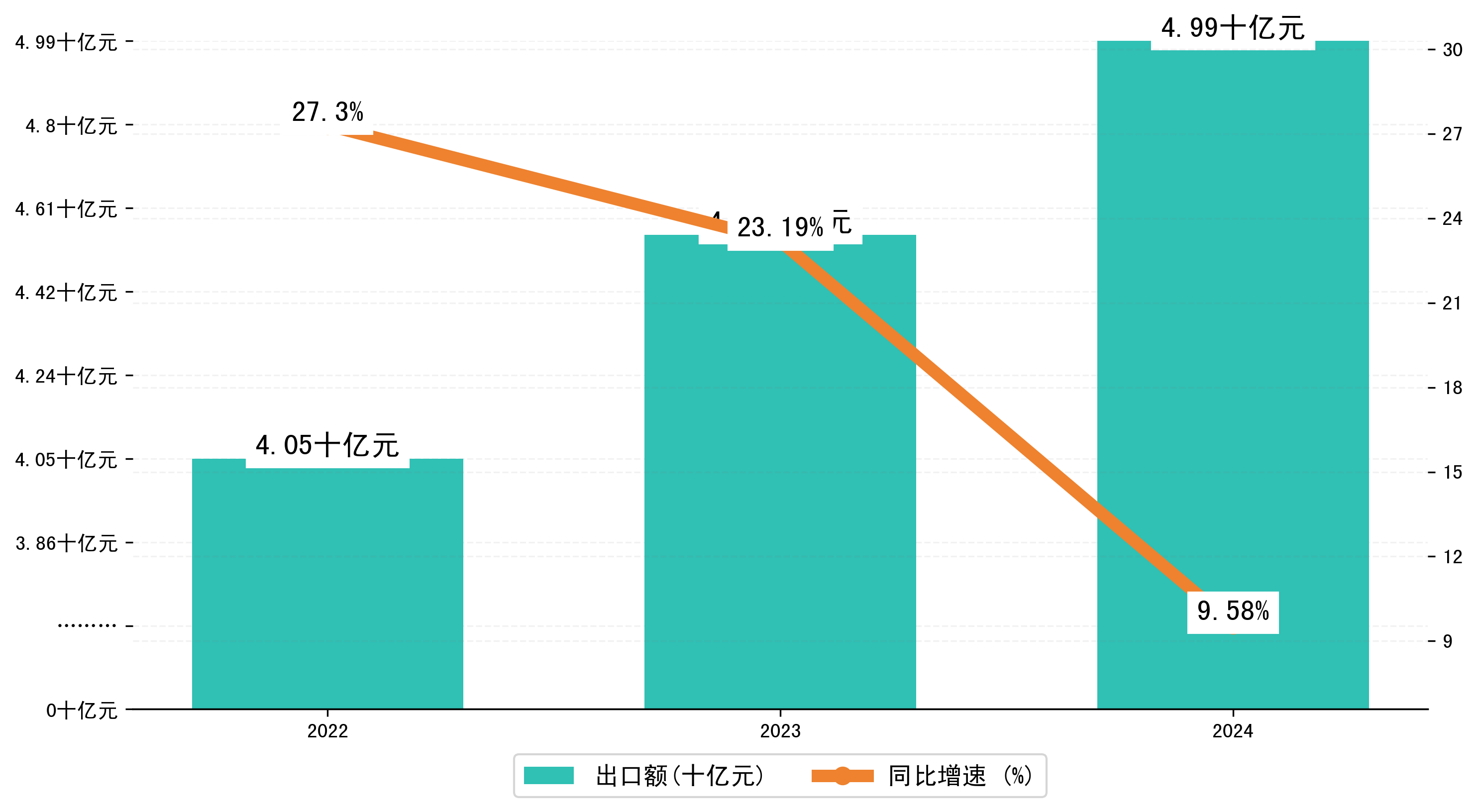 以人民币计,2024年1-3月洛阳市出口额为49,8766.4745万元,相比上年同期增加了4,3605.1659万元,同比增加了9.60%。