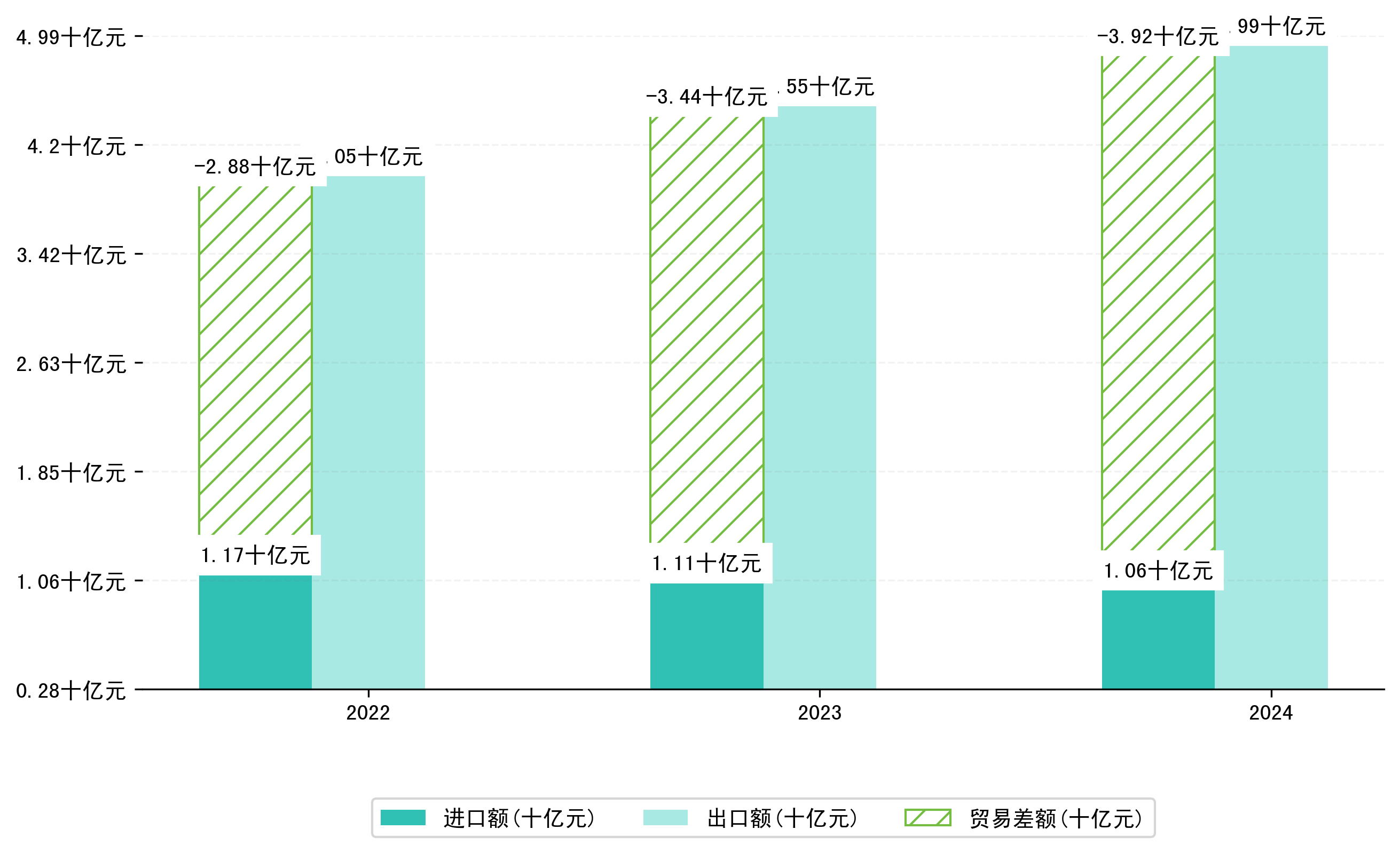 以美元计,2024年1-3月洛阳市贸易差额为5,5250,6906万美元(贸易顺差),相比上年同期增加了5303,7183万美元,同比增加10.62%。