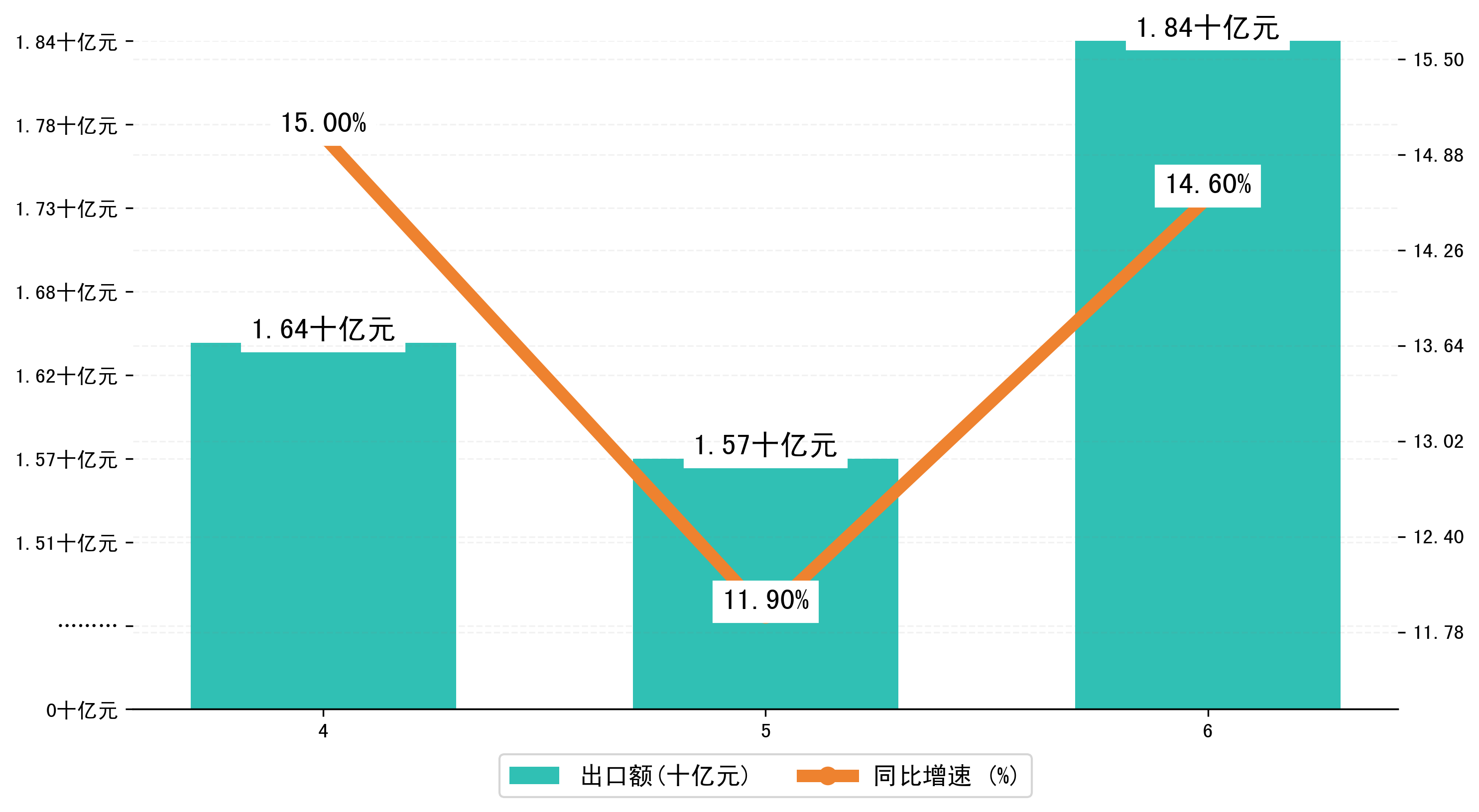 (图六:2021-2023年1-6月洛阳市累计出口额)