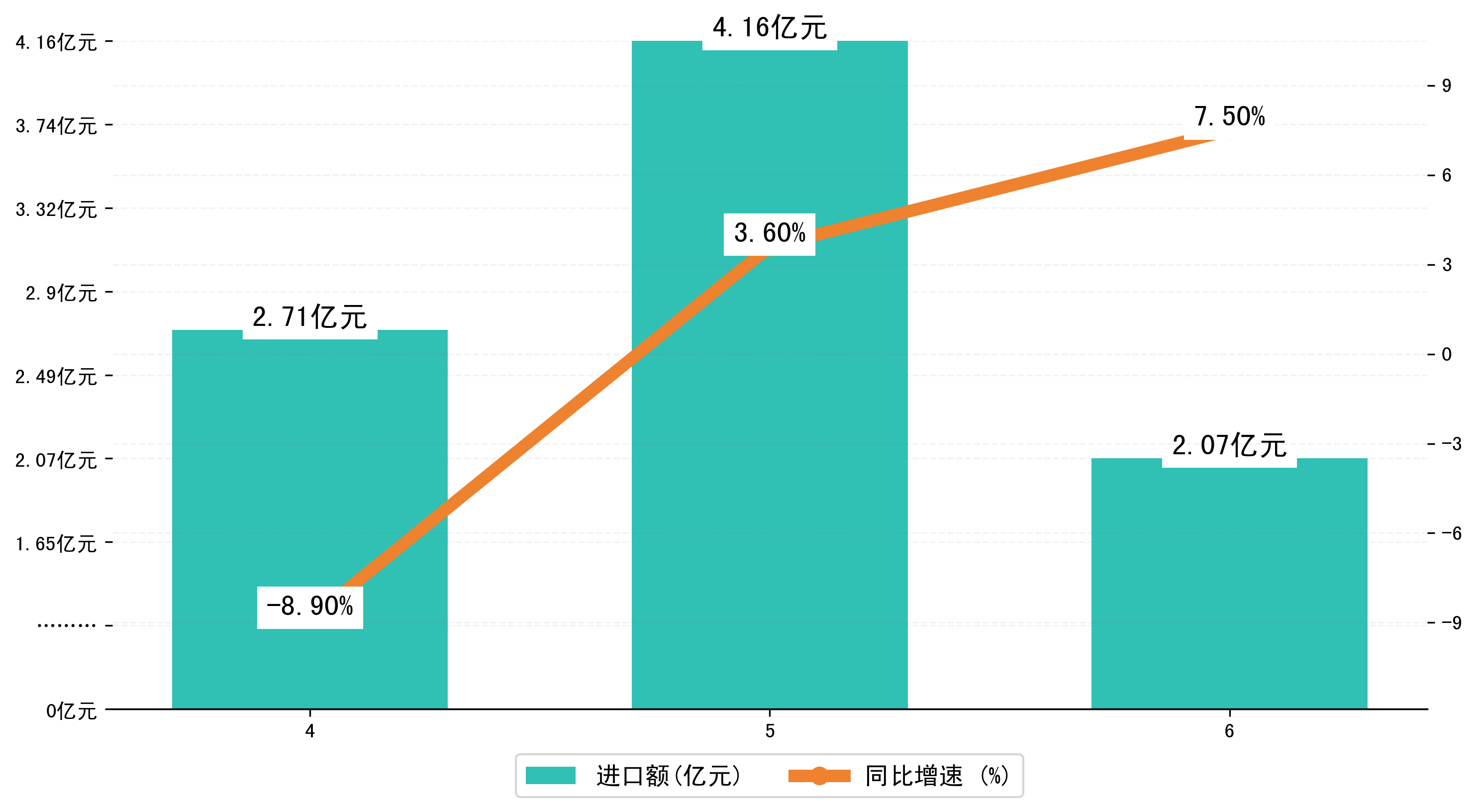 以人民币计,2023年1-6月洛阳市进口额为20,1145.8295万元,相比上年同期减少了6196.3149万元,同比增加了7.50%。
