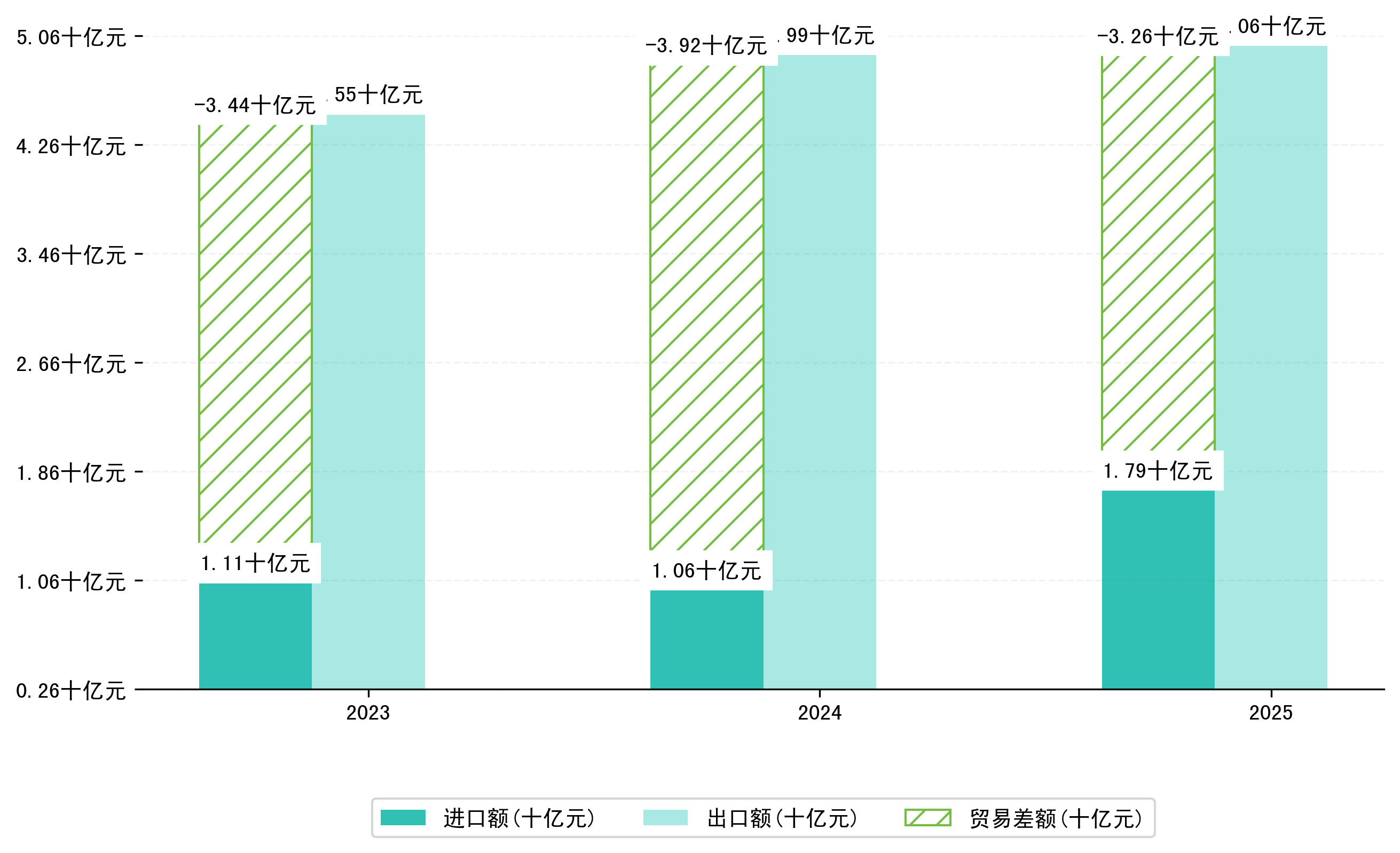 以美元计,2025年1-3月洛阳市贸易差额为4,5384,7912万美元(贸易顺差),相比上年同期减少了9865,8994万美元,同比减少-17.86%。