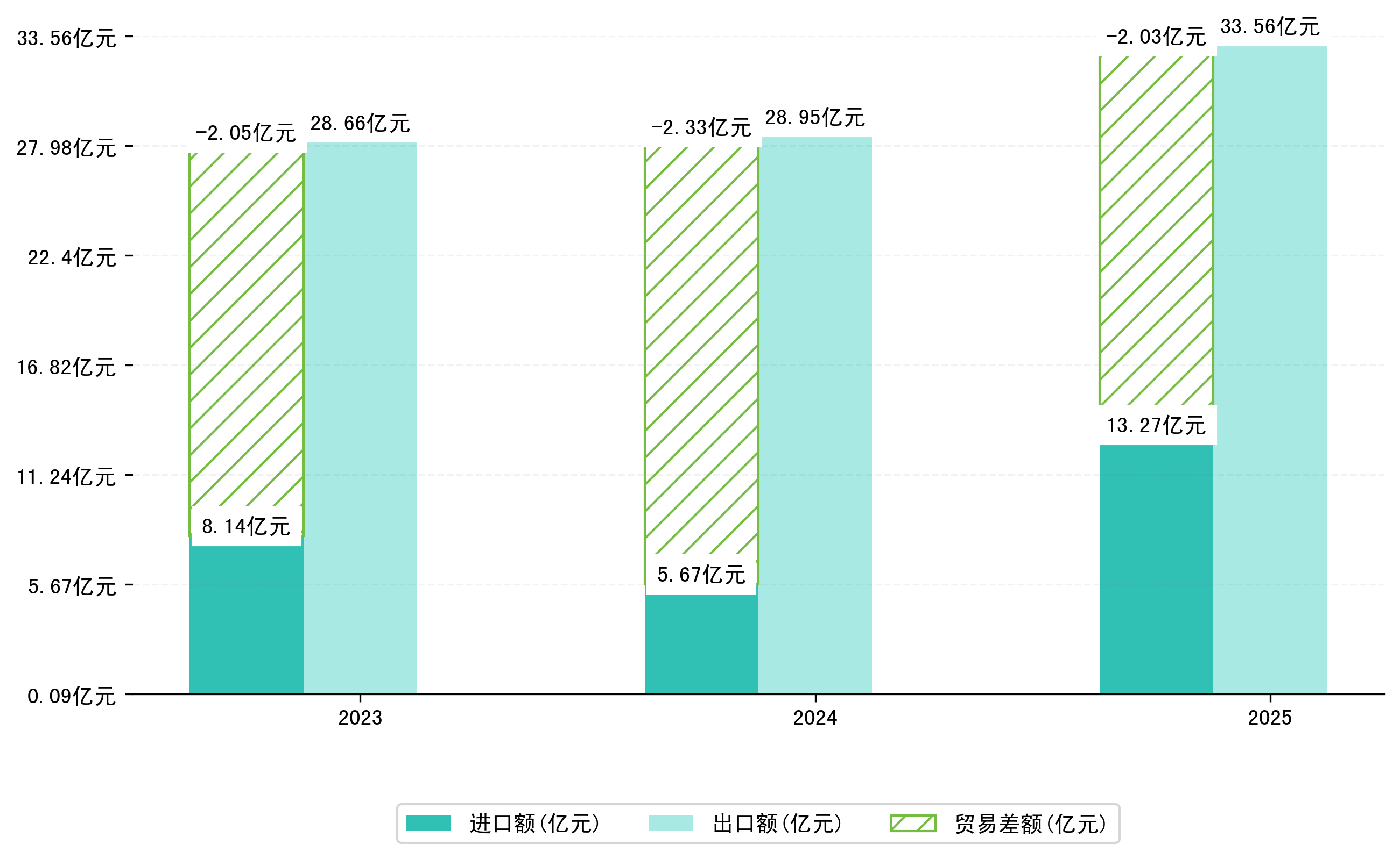 以美元计,2025年1-2月洛阳市贸易差额为2,8222,9607万美元(贸易顺差),相比上年同期减少了4548,2619万美元,同比减少-13.88%。