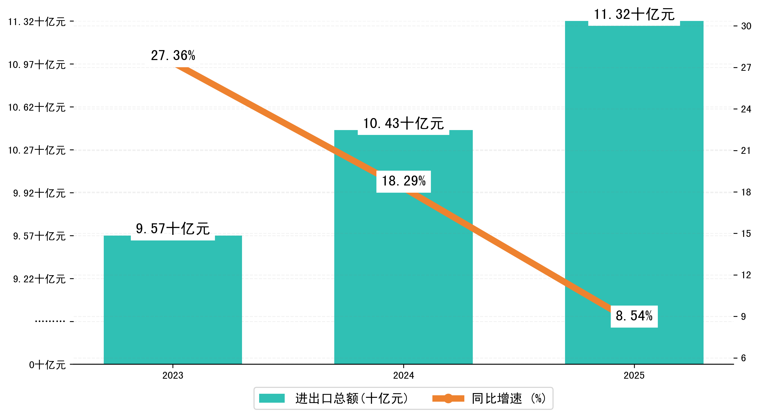 以人民币计,2025年1-5月洛阳市贸易差额为67,5722,1590万元(贸易顺差),相比上年同期增加了9513,3419万元,同比增加1.43%。