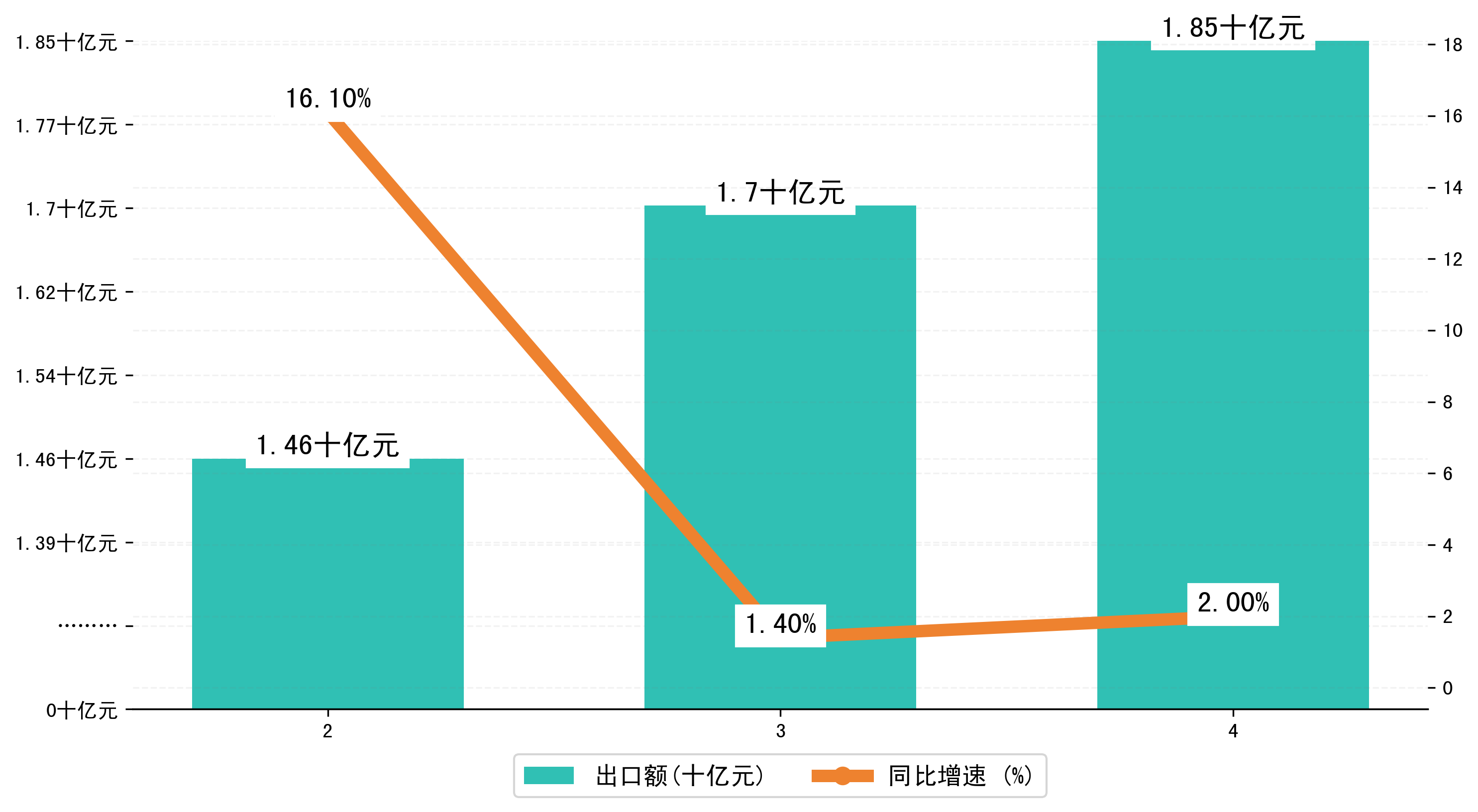 以美元计,2025年1-4月洛阳市出口额为9,6170.1564万美元,相比上年同期增加了760.1813万美元,同比增加0.90%。