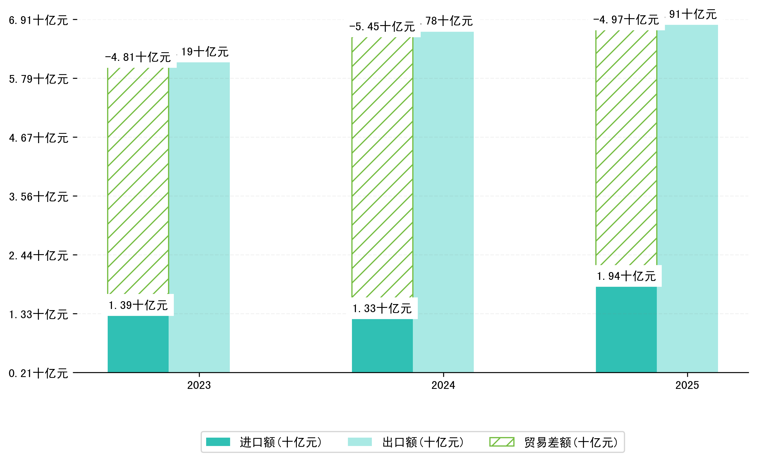 以人民币计,2025年4月洛阳市贸易差额为16,7938,8783万元(贸易顺差),相比上月增加了4,4909,9538万元,即6262,3259万美元;相比上年同期增加了1,5393,5297万元,同比增加10.09%。