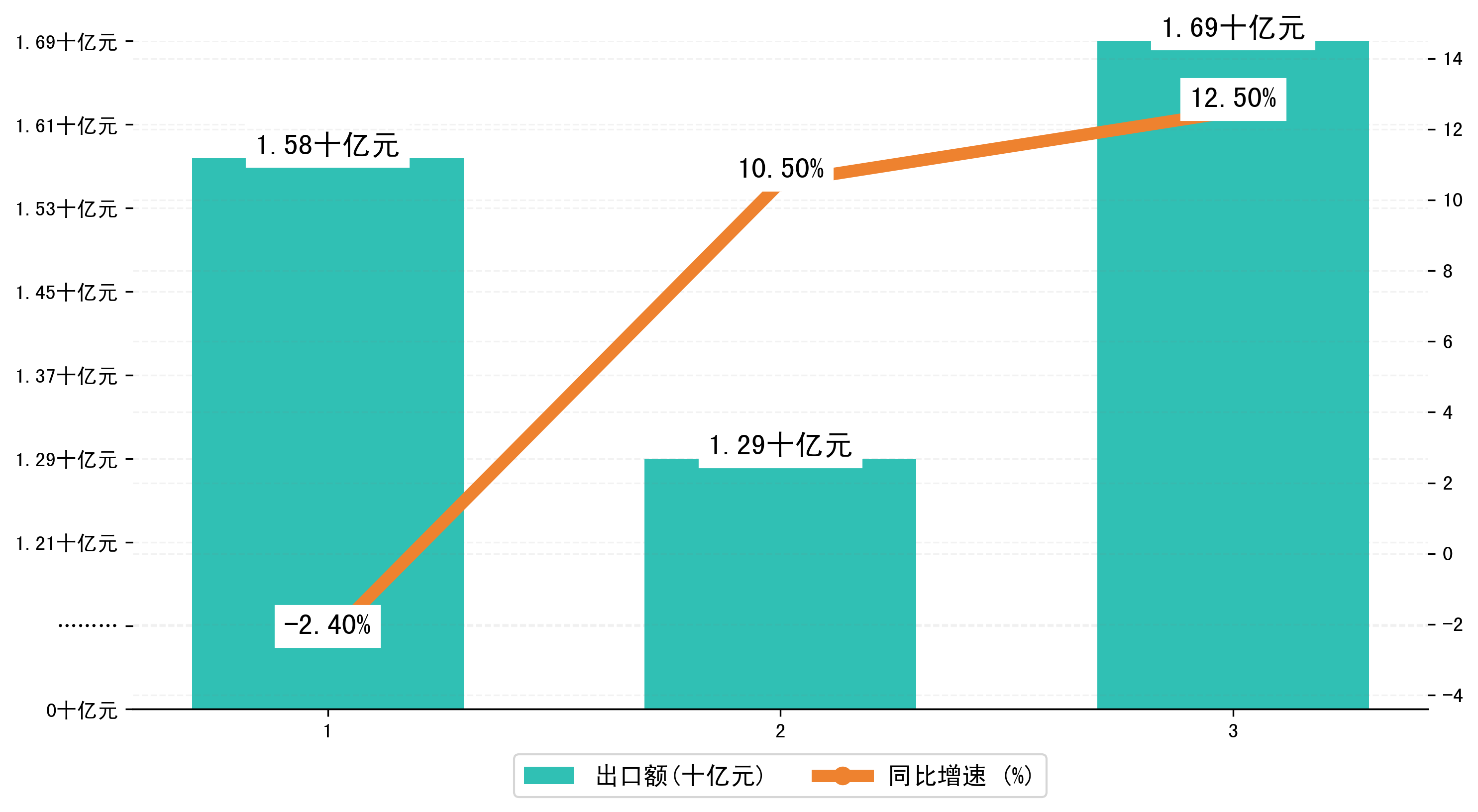 以人民币计,2023年3月洛阳市出口额为16,8608.7196万元,相比上月增加了3,9487.0175万元;相比上年同期增加了2,3287.7412万元,同比增加了12.50%。