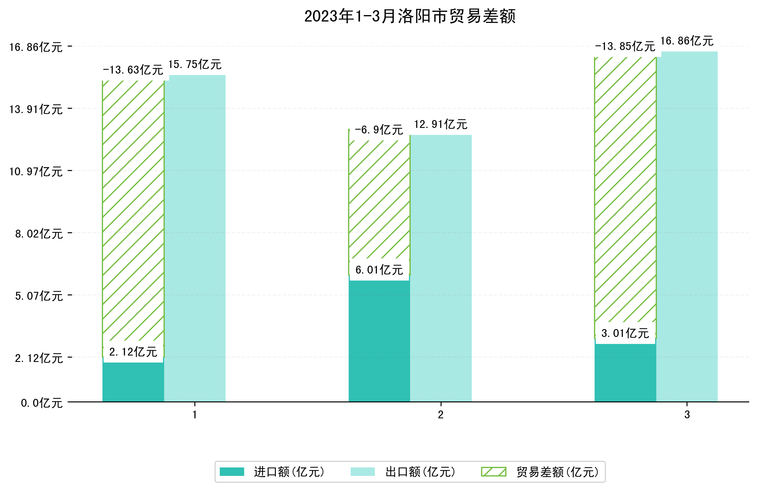 以美元计,2023年1-3月洛阳市贸易差额为4,9946,9723万美元(贸易顺差),相比上年同期增加了4735,5262万美元,同比增加10.47%。