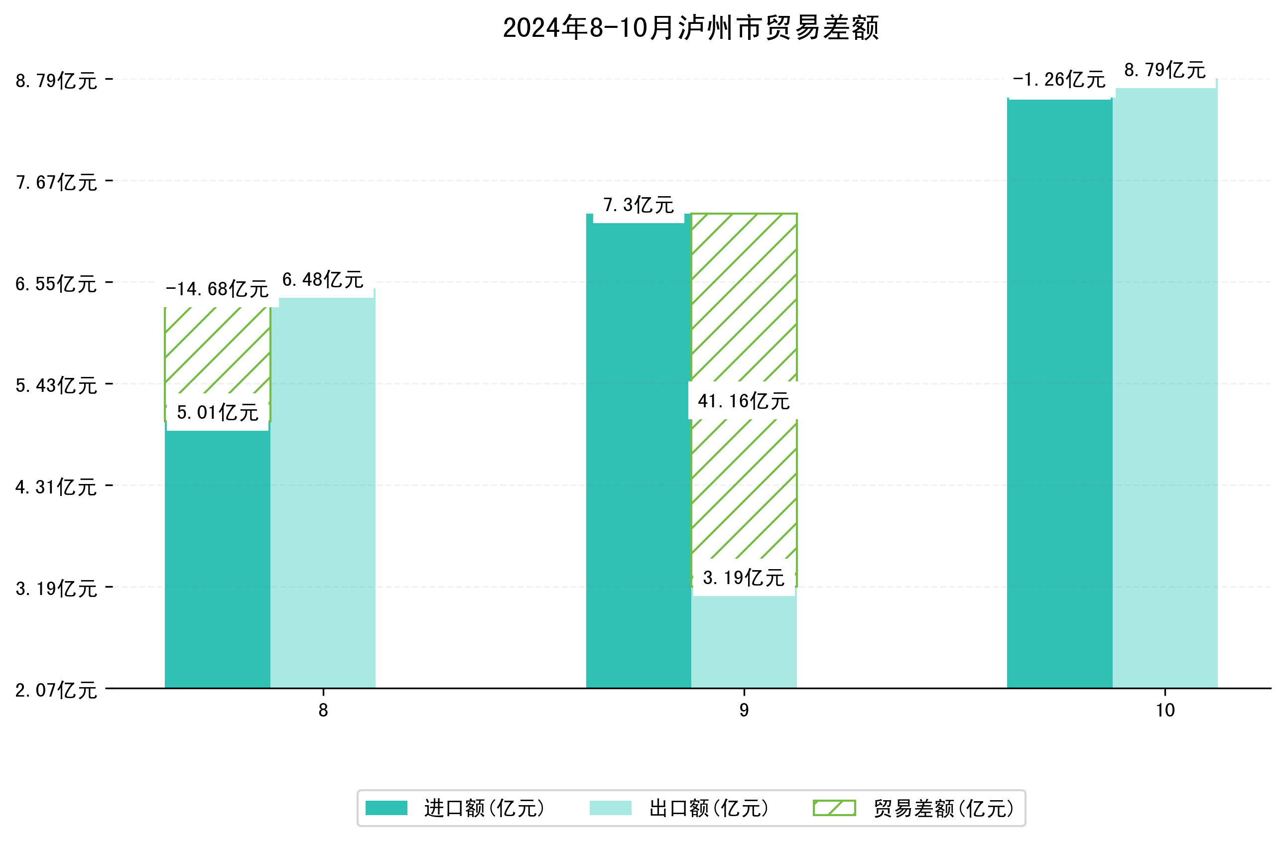 2024年10月泸州市进出口总额及进出口差额统计分析