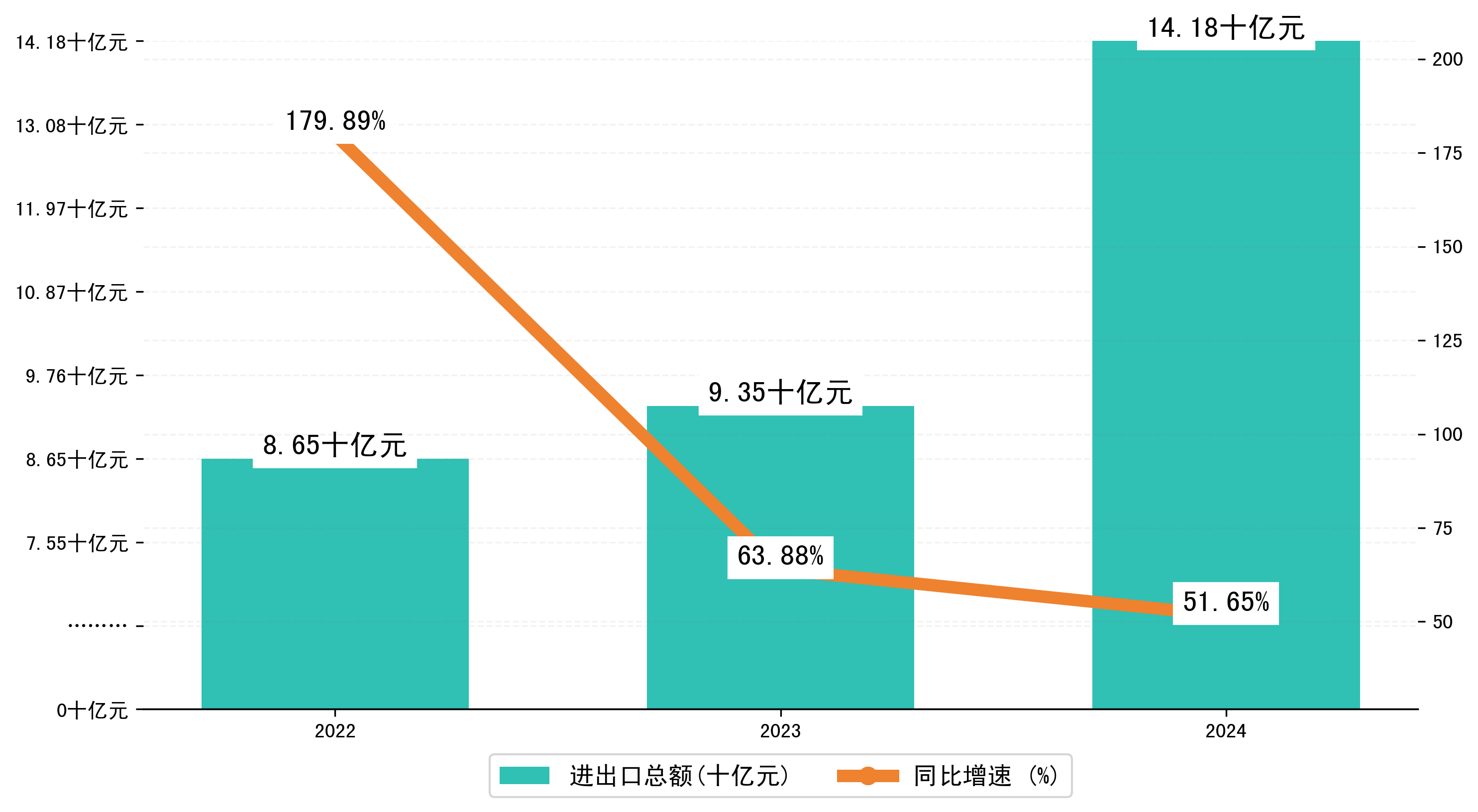 以人民币计,2024年1-8月泸州市进出口总额为141,8288.5404万元,相比上年同期增加了48,3049.4388万元,同比增加了65.30%。