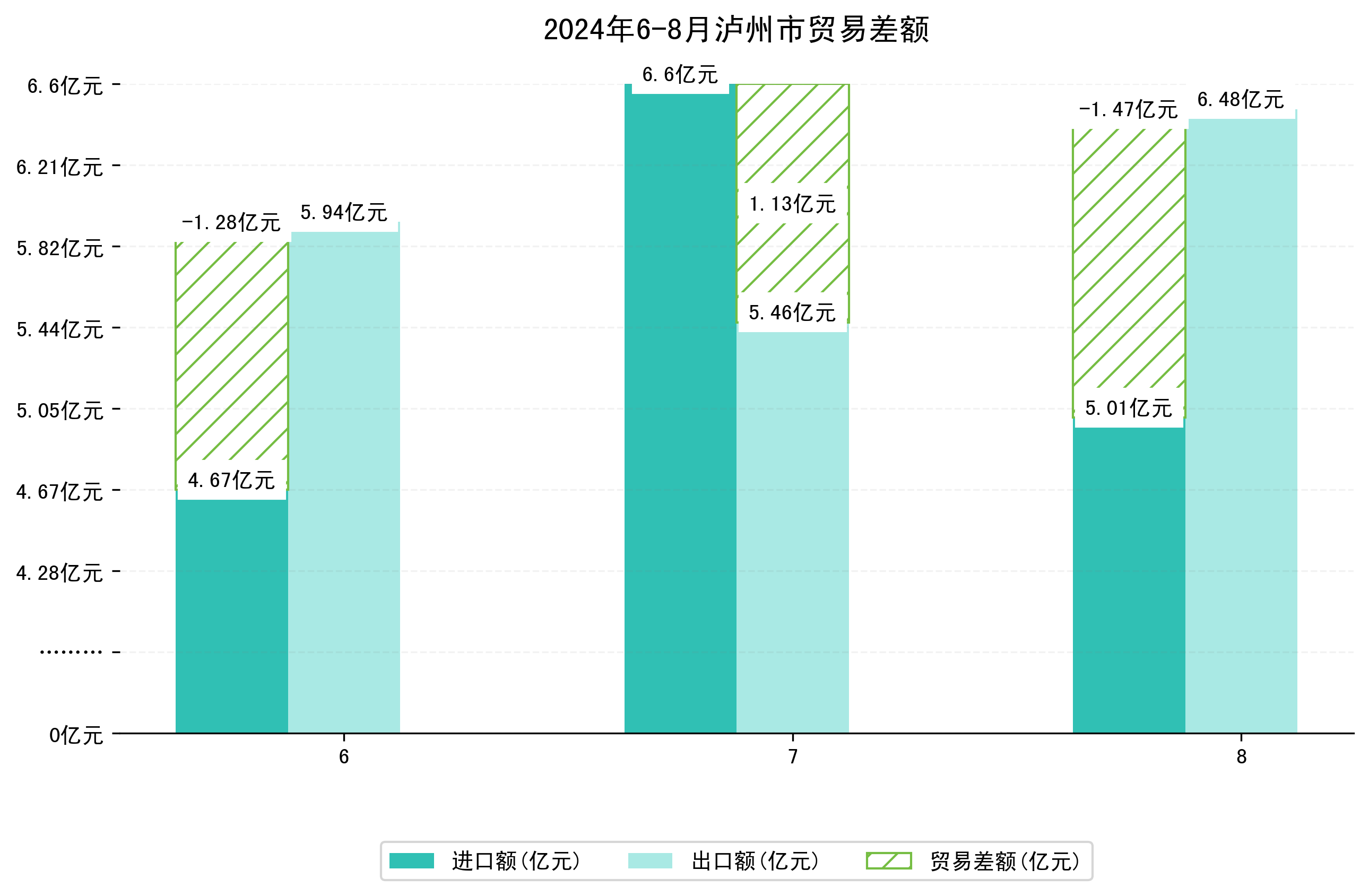 2024年8月泸州市进出口总额及进出口差额统计分析