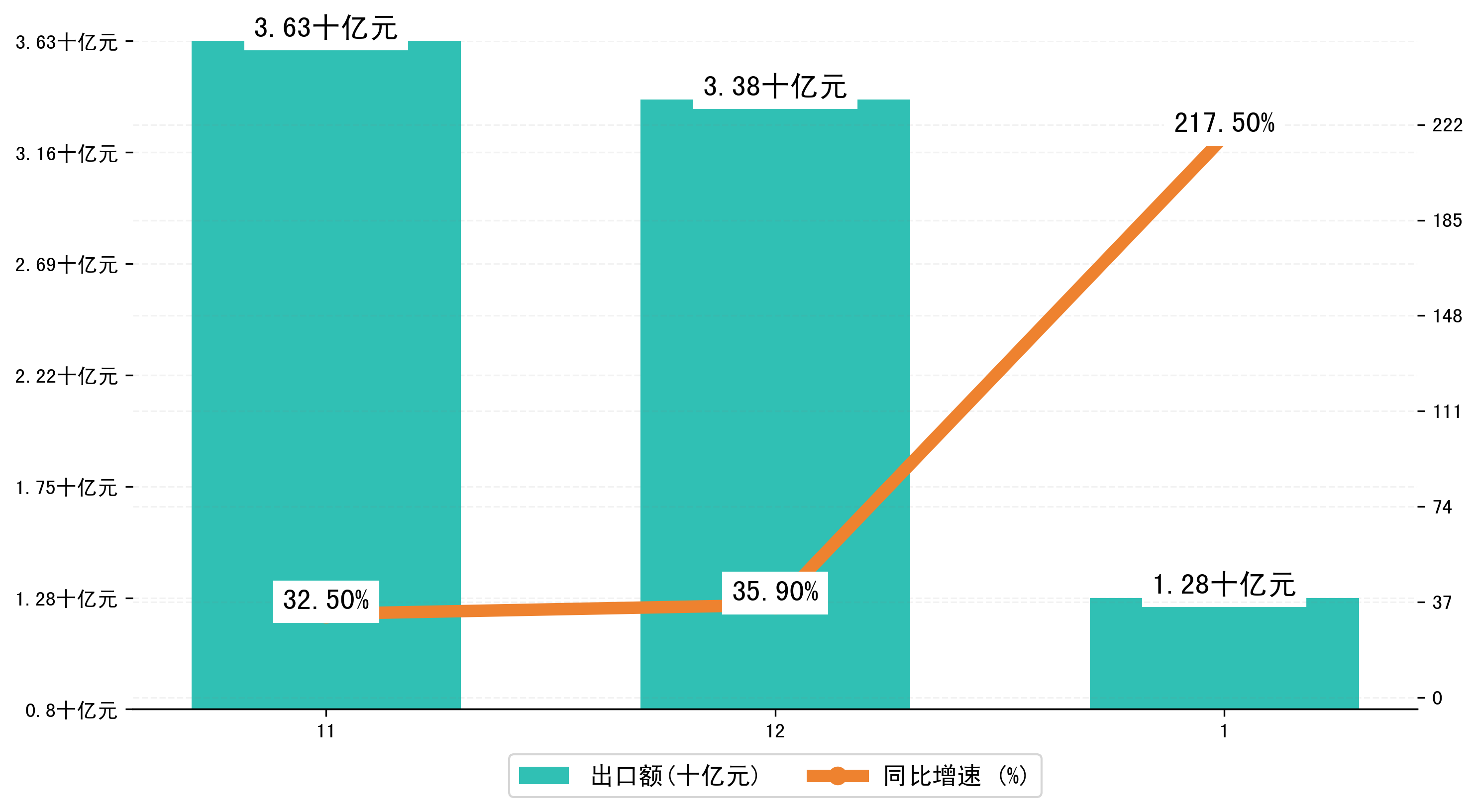 以人民币计,2024年1-1月泸州市出口额为12,7514.8114万元,相比上年同期增加了7,2593.5545万元,同比增加了217.50%。