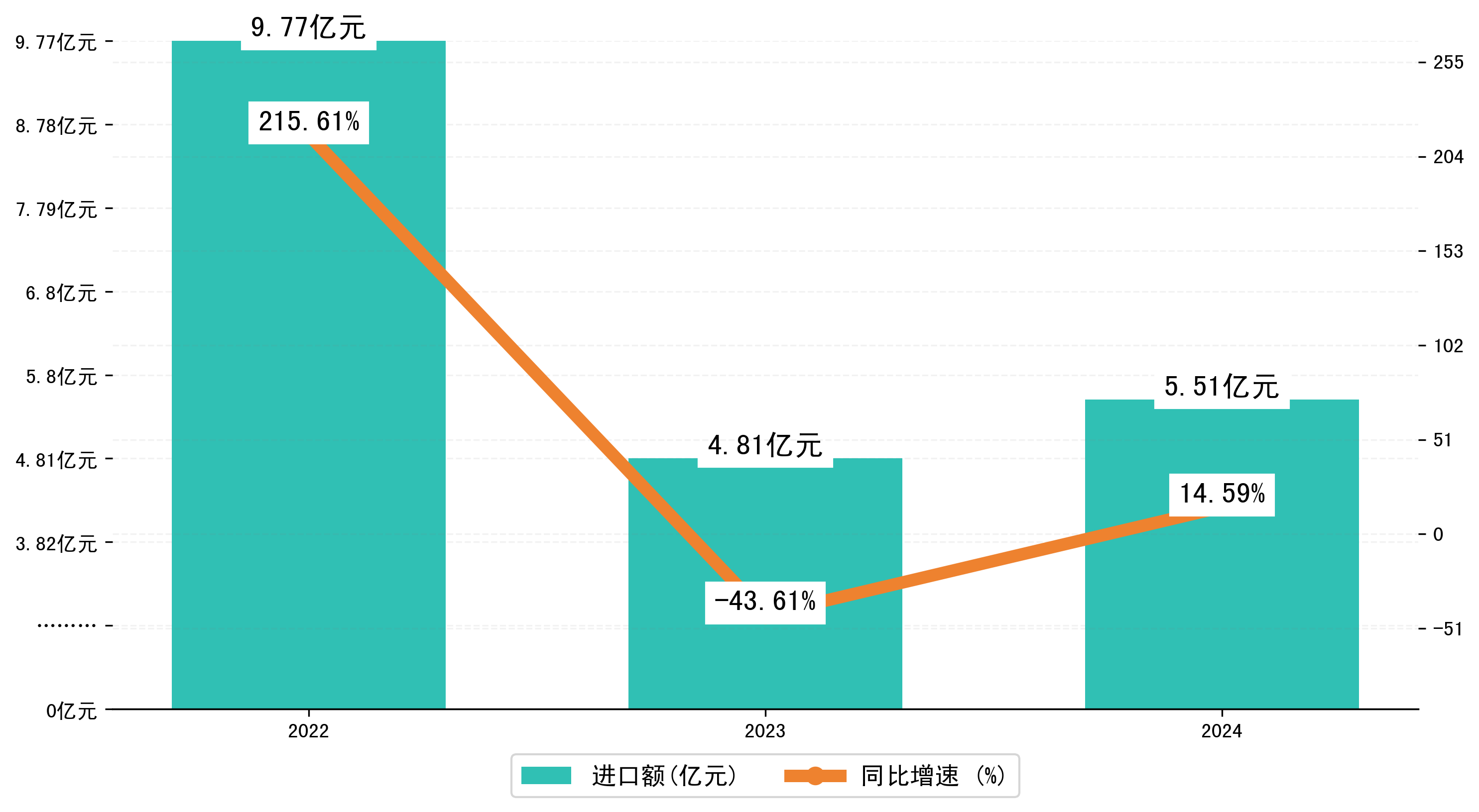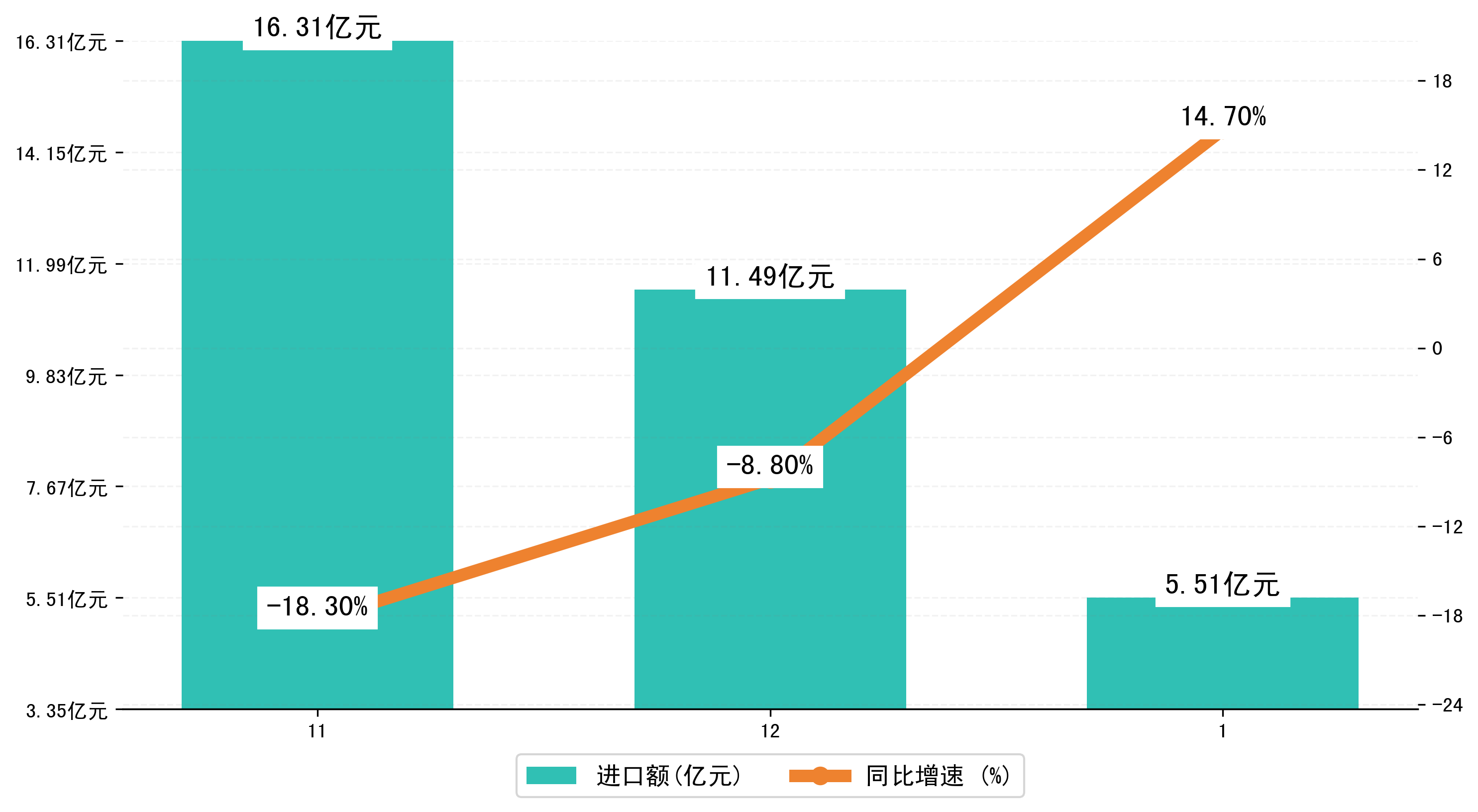 以人民币计,2024年1-1月泸州市进口额为5,5117.7575万元,相比上年同期增加了7016.2062万元,同比增加了14.70%。