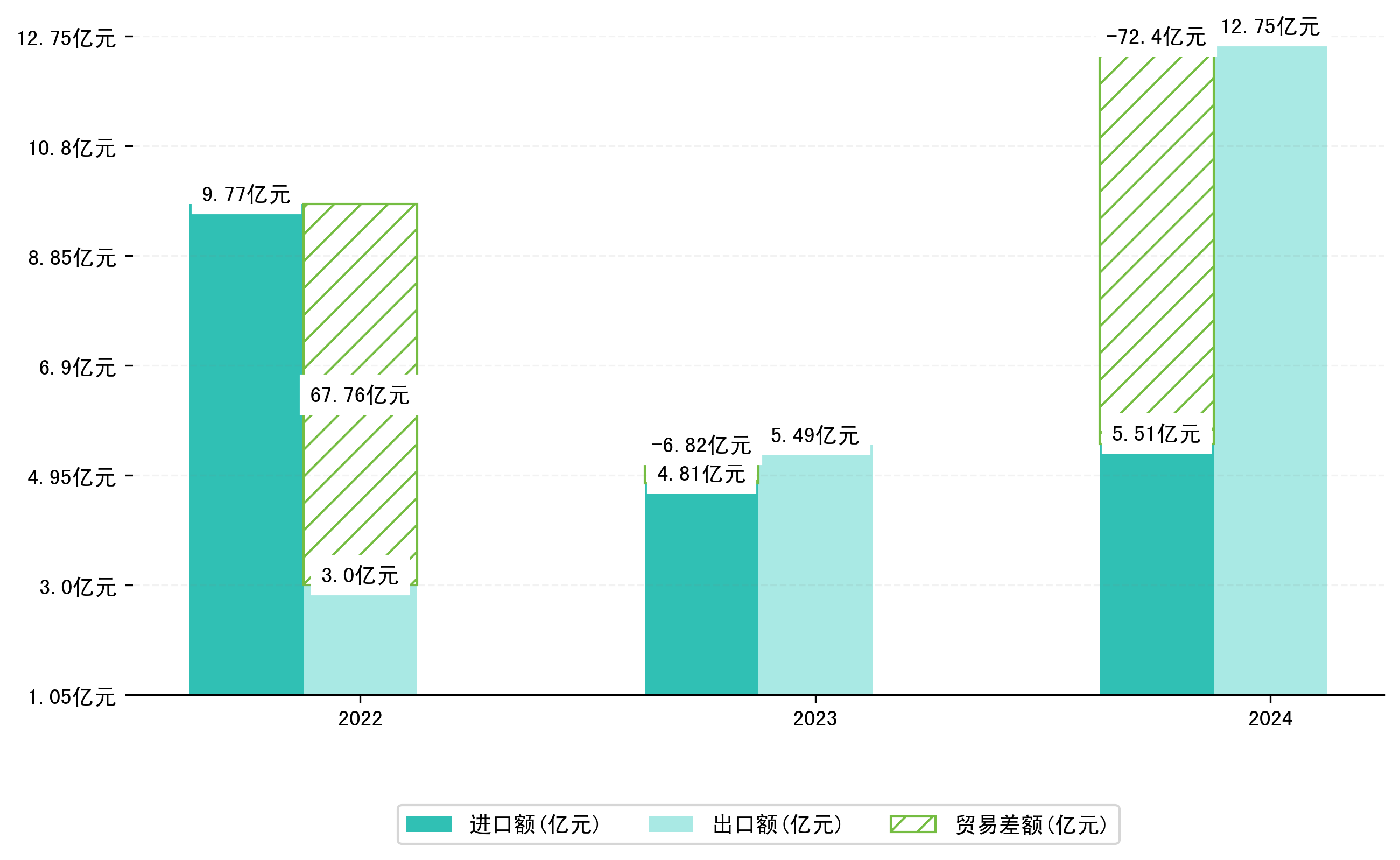 以人民币计,2024年1-1月泸州市贸易差额为7,2397,0539万元(贸易顺差),相比上年同期增加了6,5577,3483万元,同比增加961.59%。