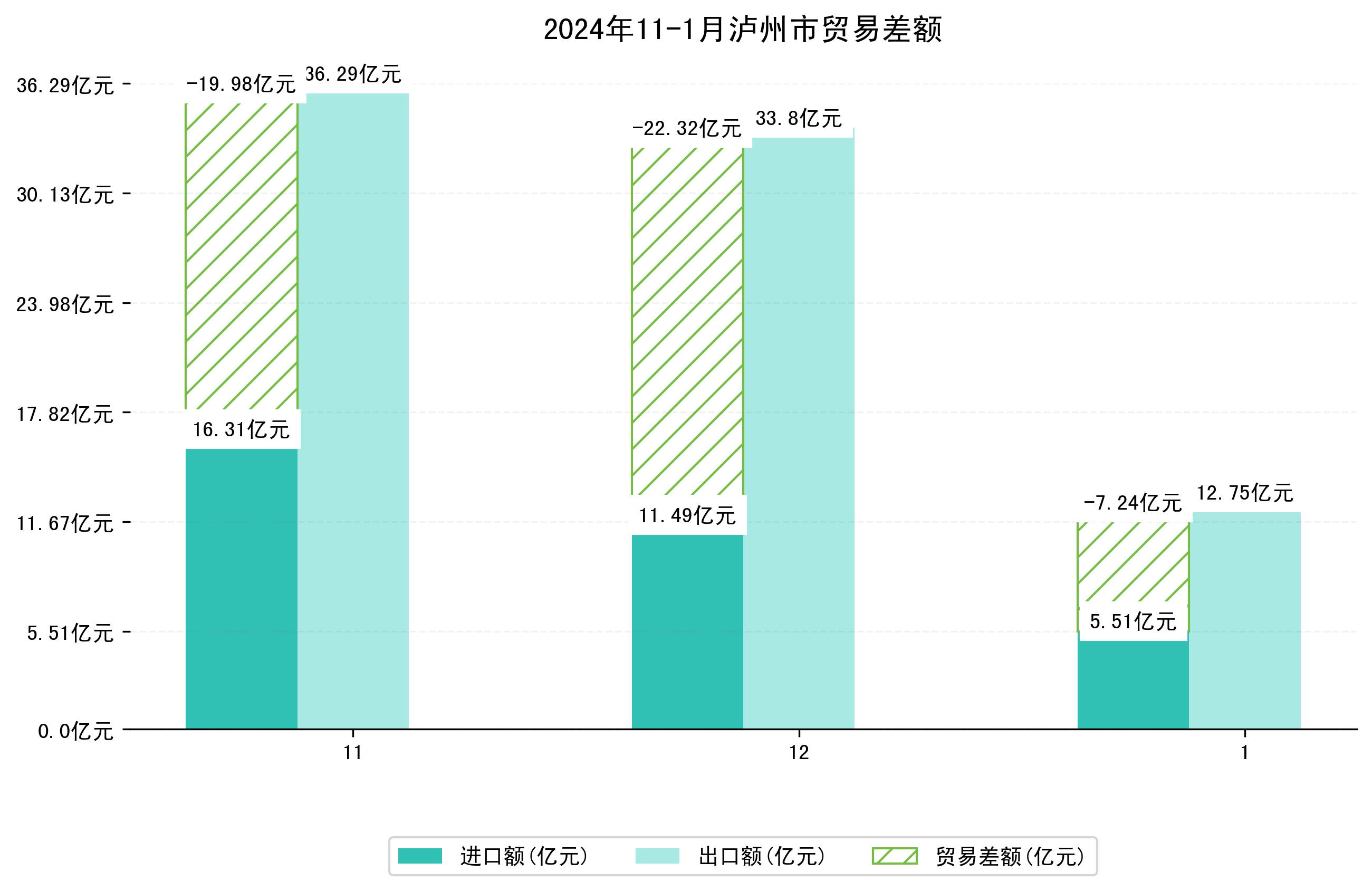 2024年1月泸州市进出口总额及进出口差额统计分析