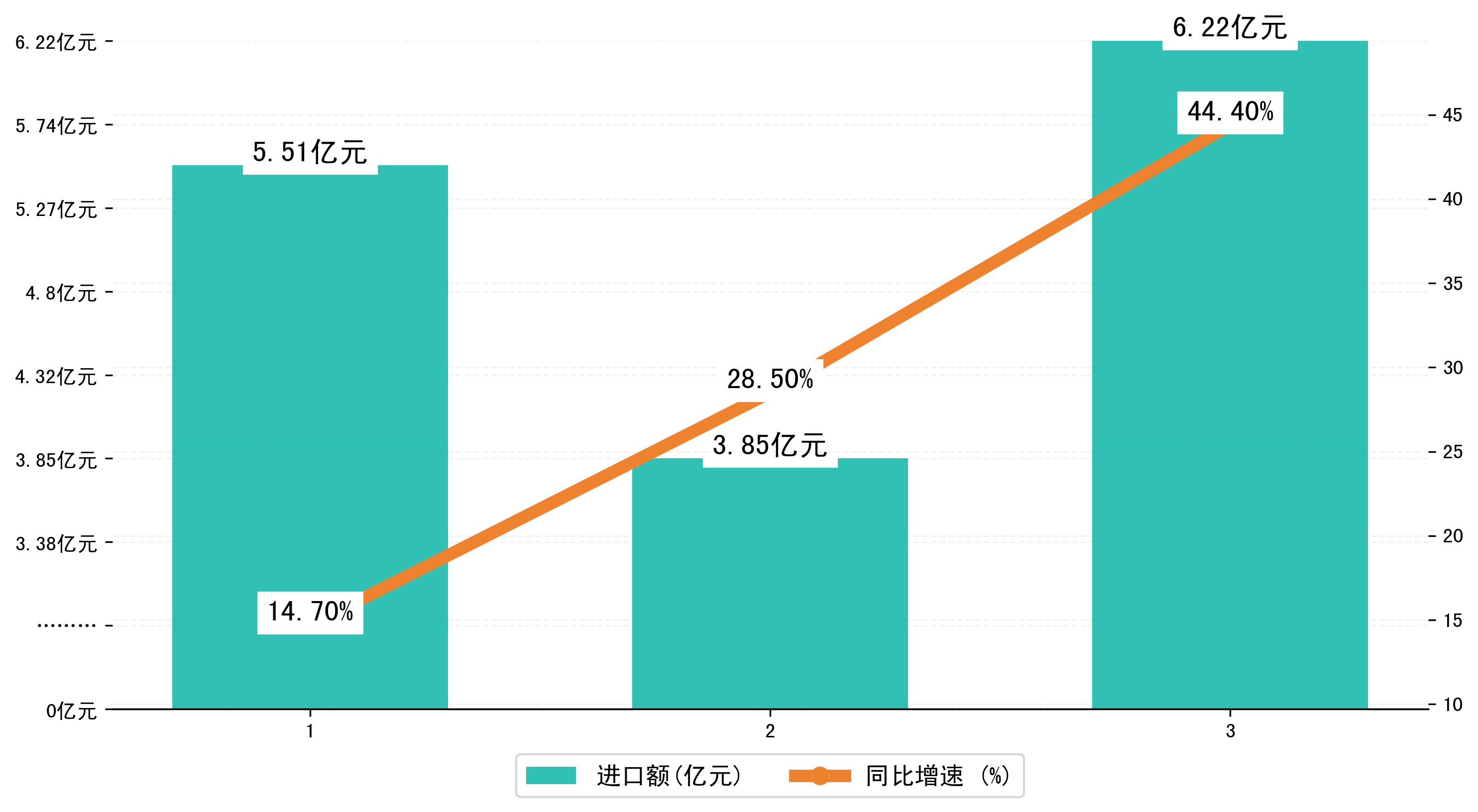 以人民币计,2024年1-3月泸州市进口额为15,5791.6957万元,相比上年同期增加了3,7952.4184万元,同比增加了44.40%。