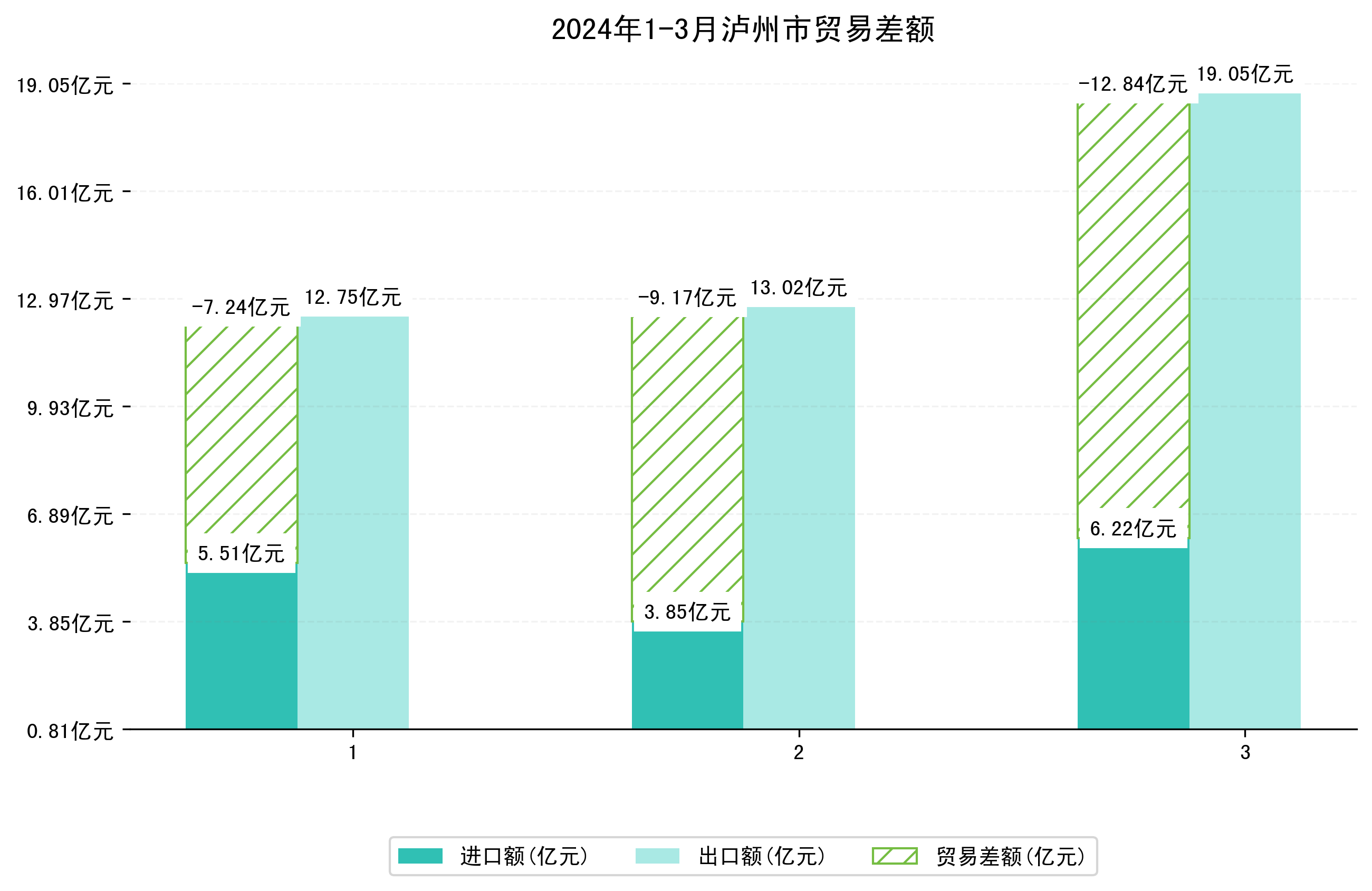 2024年3月泸州市进出口总额及进出口差额统计分析