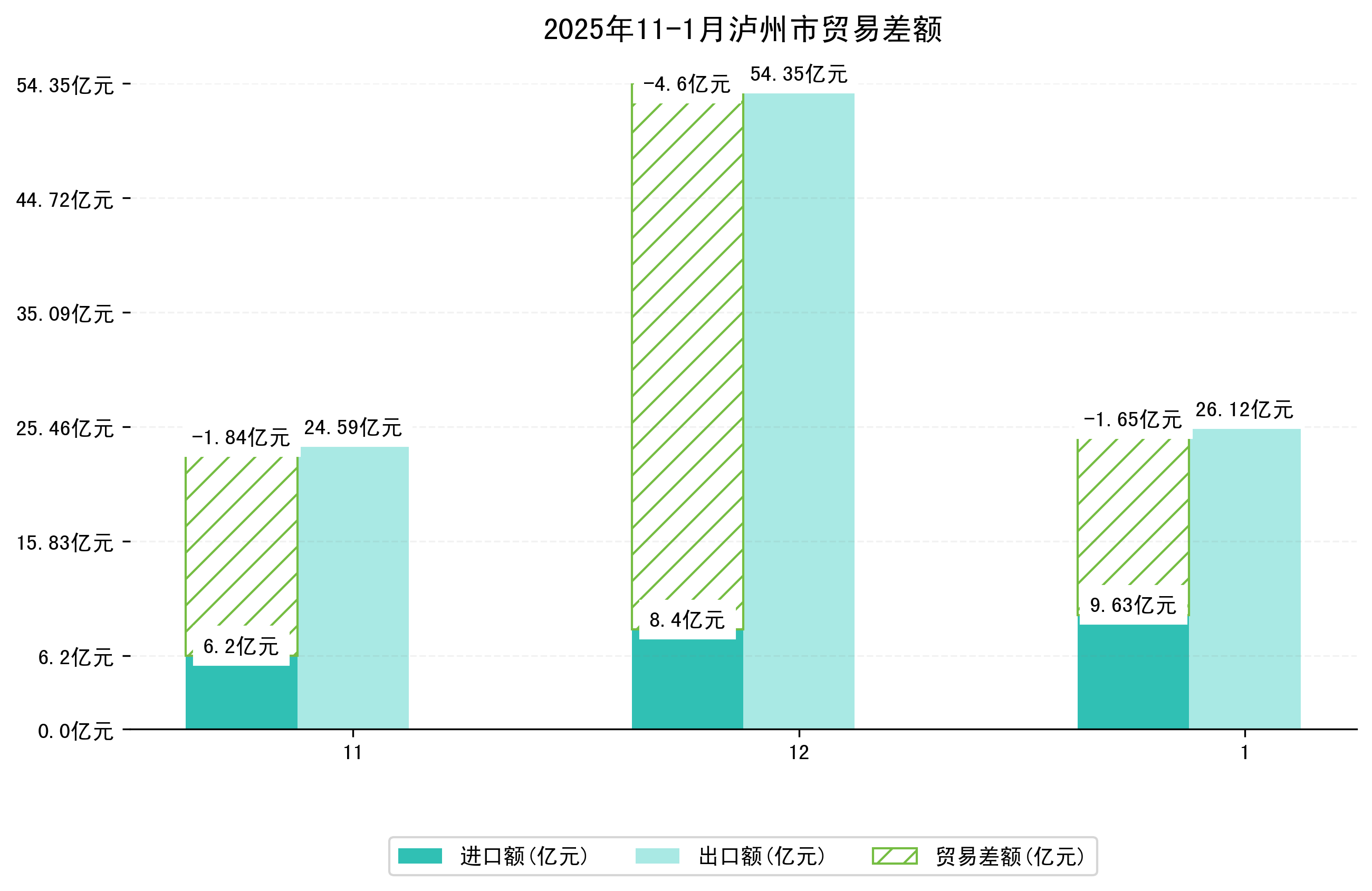 2025年1月泸州市进出口总额及进出口差额统计分析