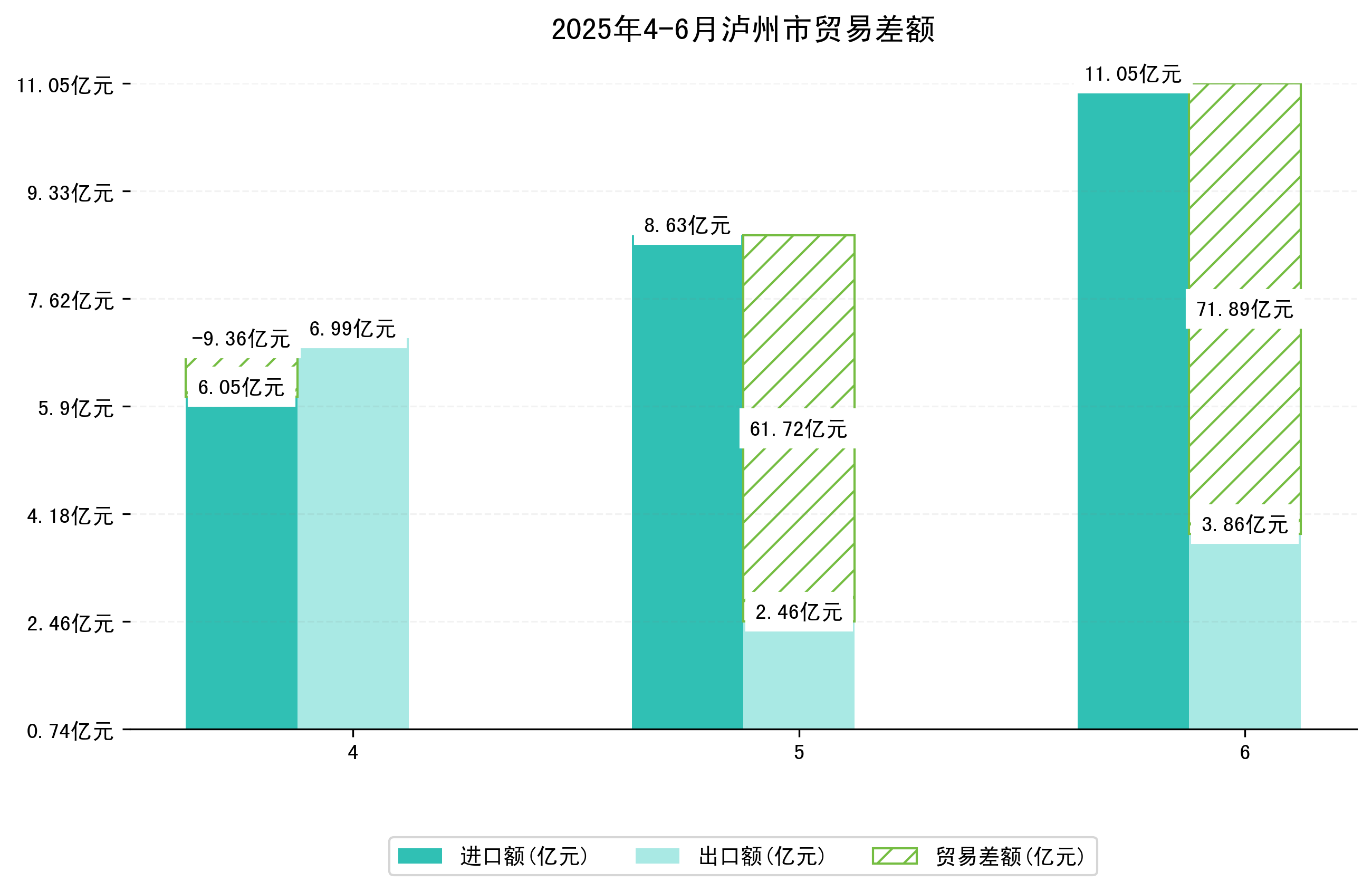 2025年6月泸州市进出口总额及进出口差额统计分析