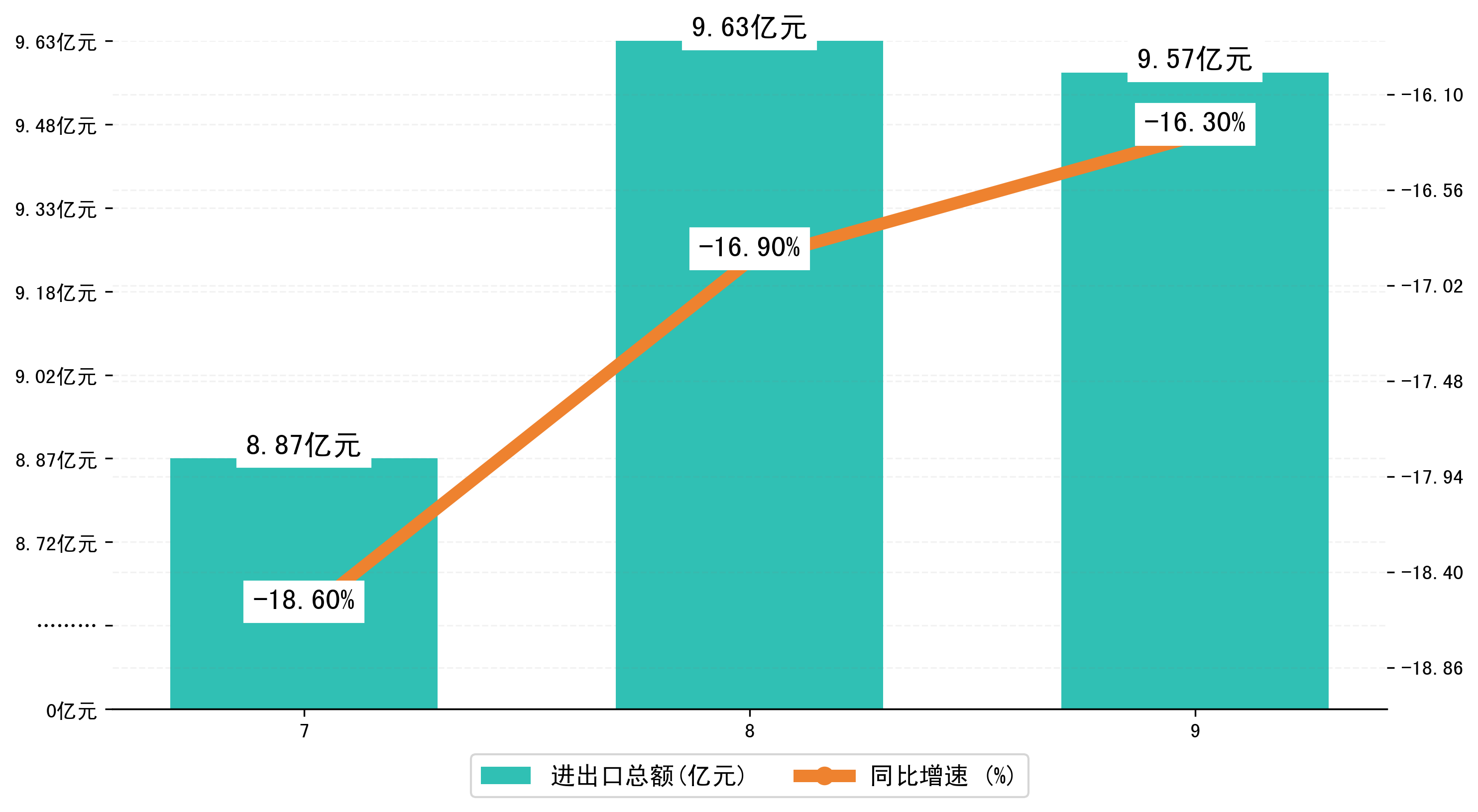 2025年9月泸州市进出口总额及进出口差额统计分析