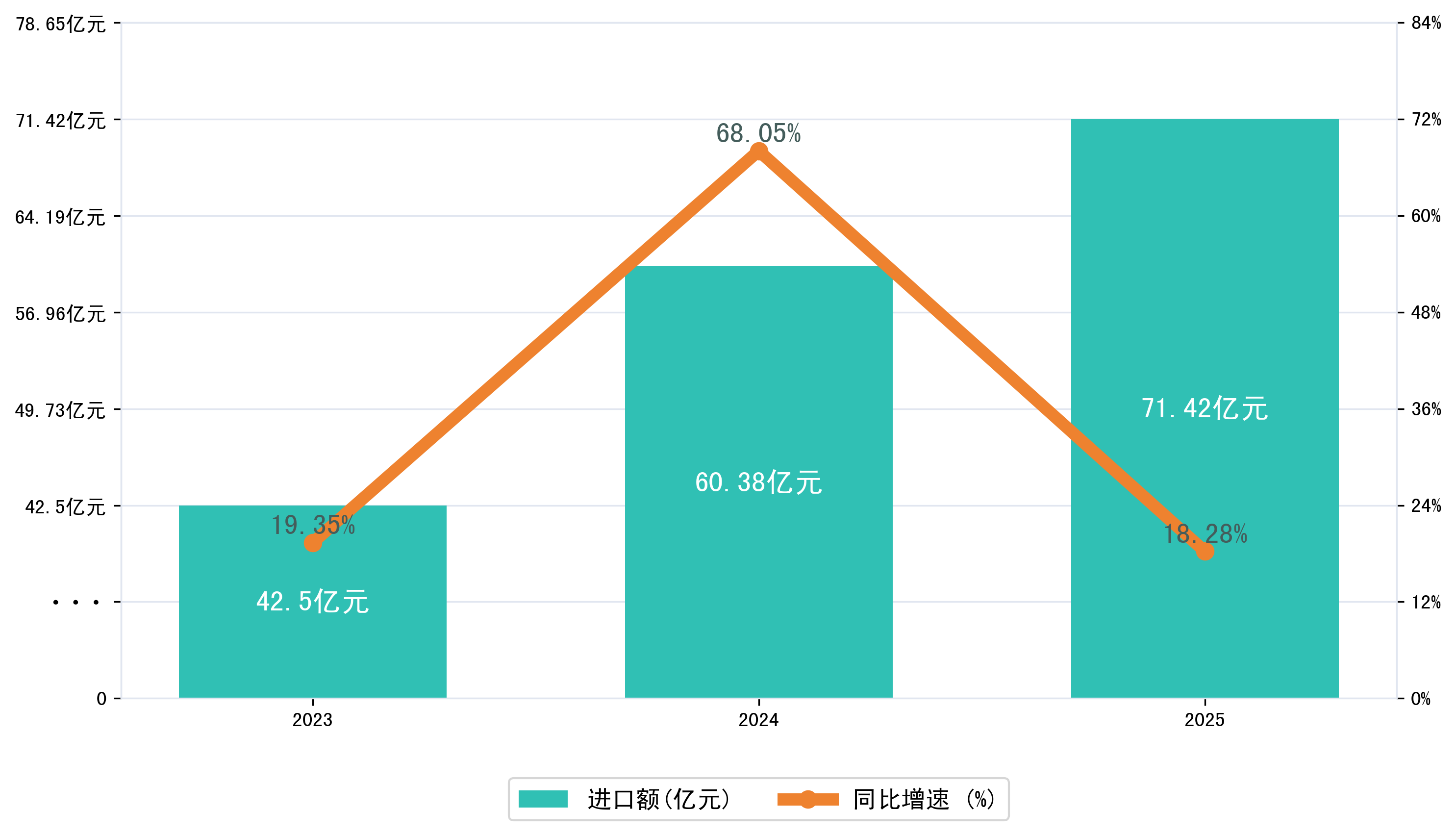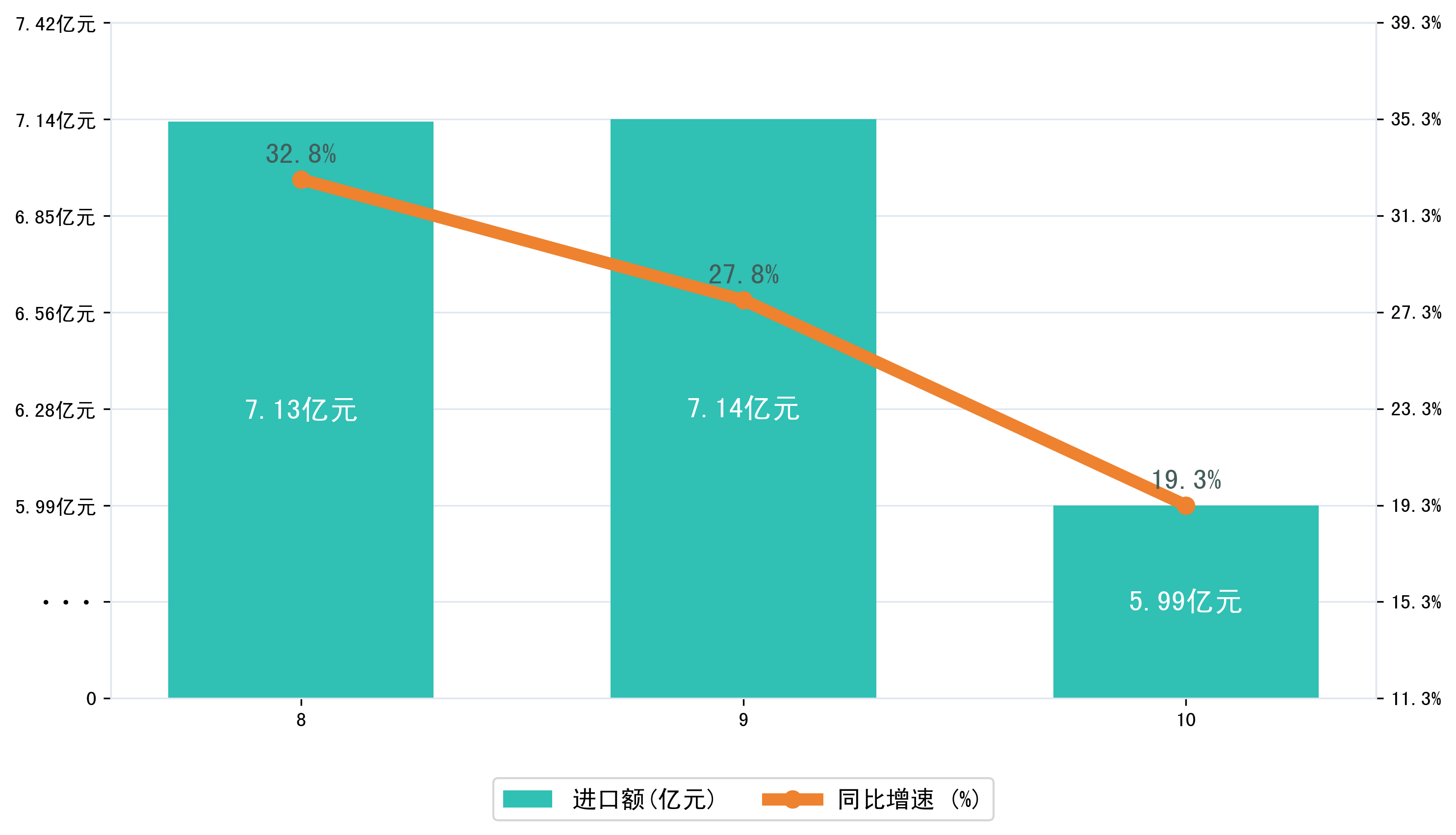 以人民币计,2025年1-10月泸州市进口额为71,4180.4967万元,相比上年同期增加了11,0392.7476万元,同比增加了19.30%。