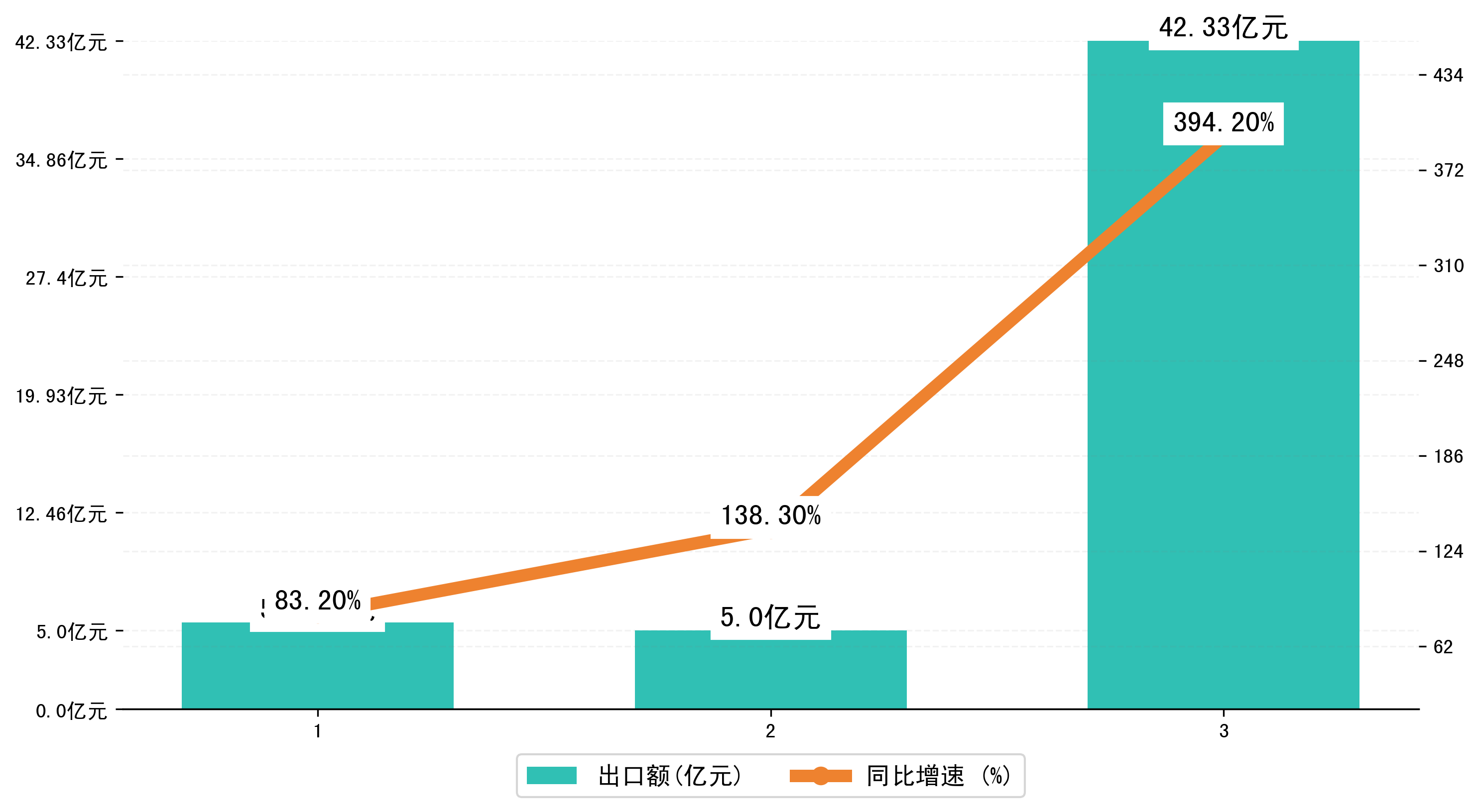 以人民币计,2023年3月泸州市出口额为42,3288.1511万元,相比上月增加了37,3331.5214万元;相比上年同期增加了31,5026.1218万元,同比增加了394.20%。