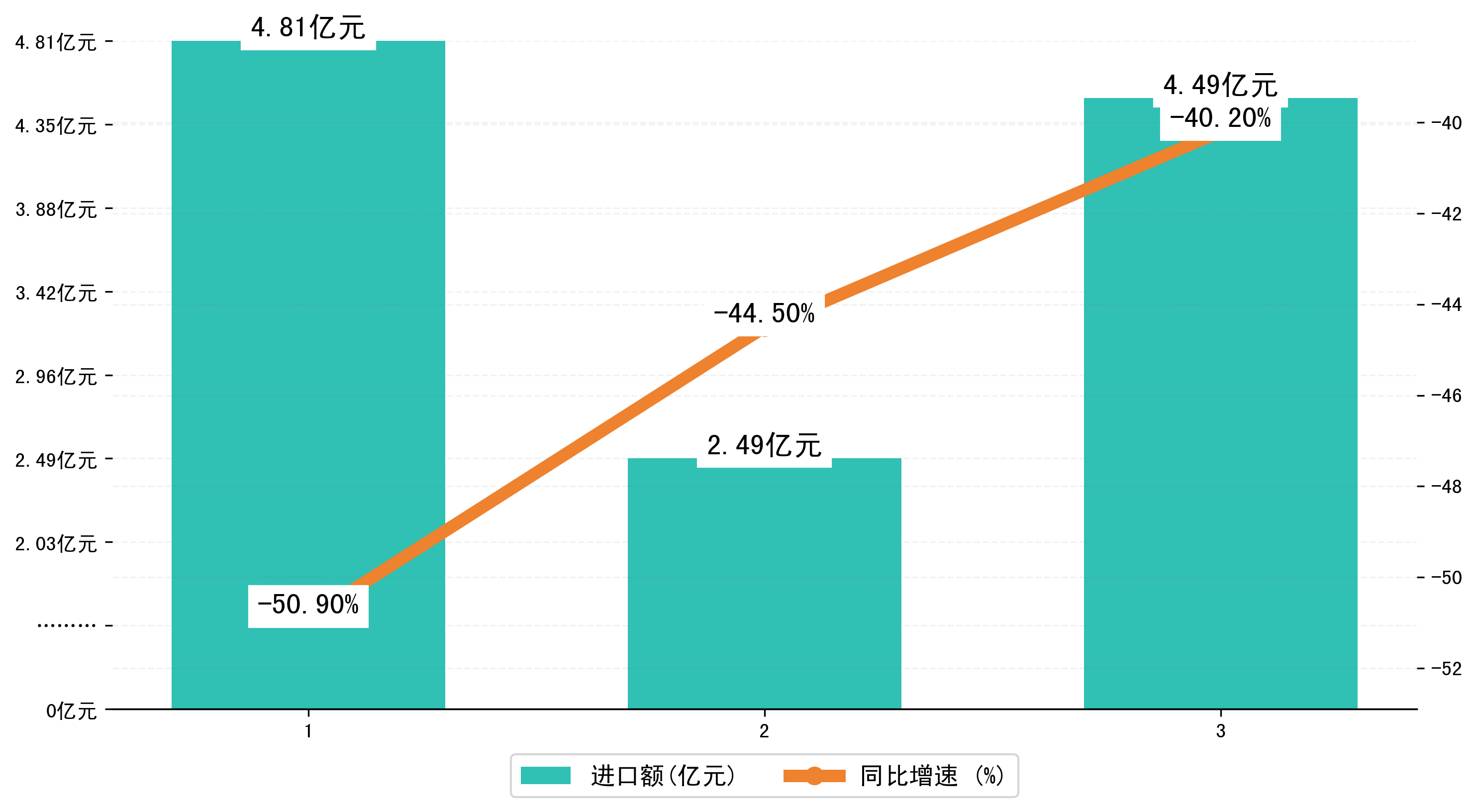 以人民币计,2023年3月泸州市进口额为4,4911.0976万元,相比上月增加了1,9976.1127万元;相比上年同期减少了1,8643.9627万元,同比减少了-40.20%。