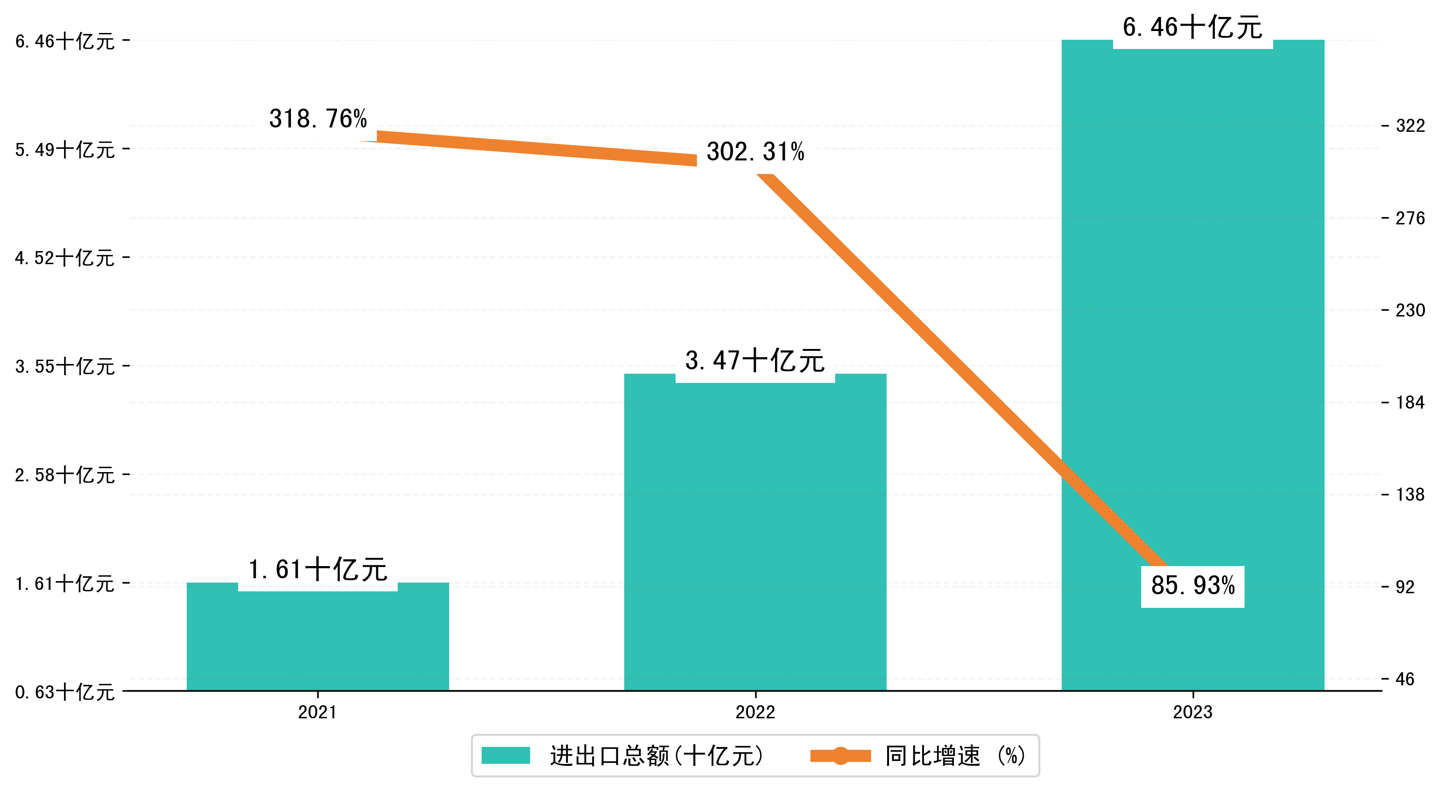 以人民币计,2023年1-3月泸州市进出口总额为64,5959.5675万元,相比上年同期增加了29,8545.1436万元,同比增加了112.50%。