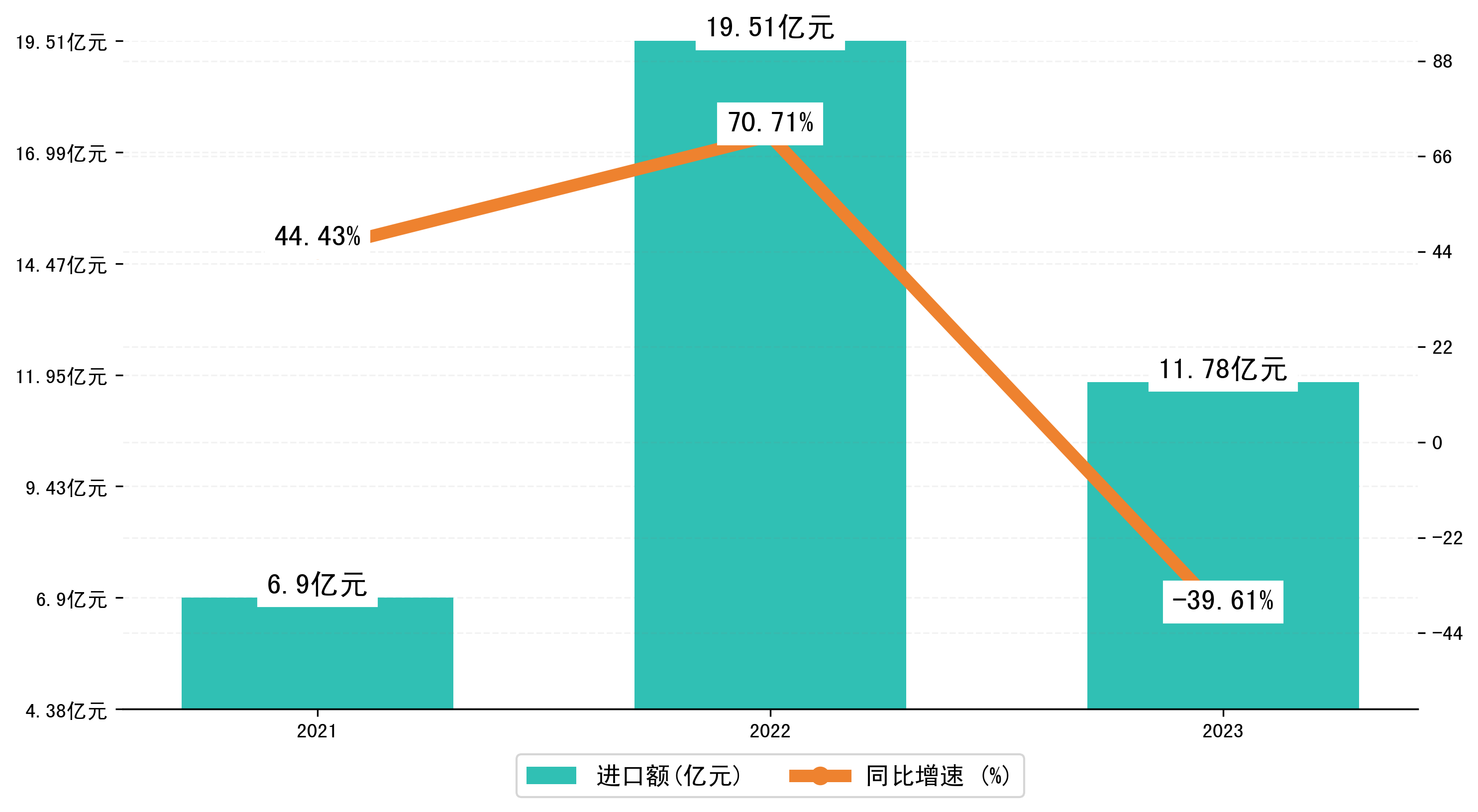 以人民币计,2023年1-3月泸州市进口额为11,7839.2773万元,相比上年同期减少了7,7300.67万元,同比减少了-40.20%。
