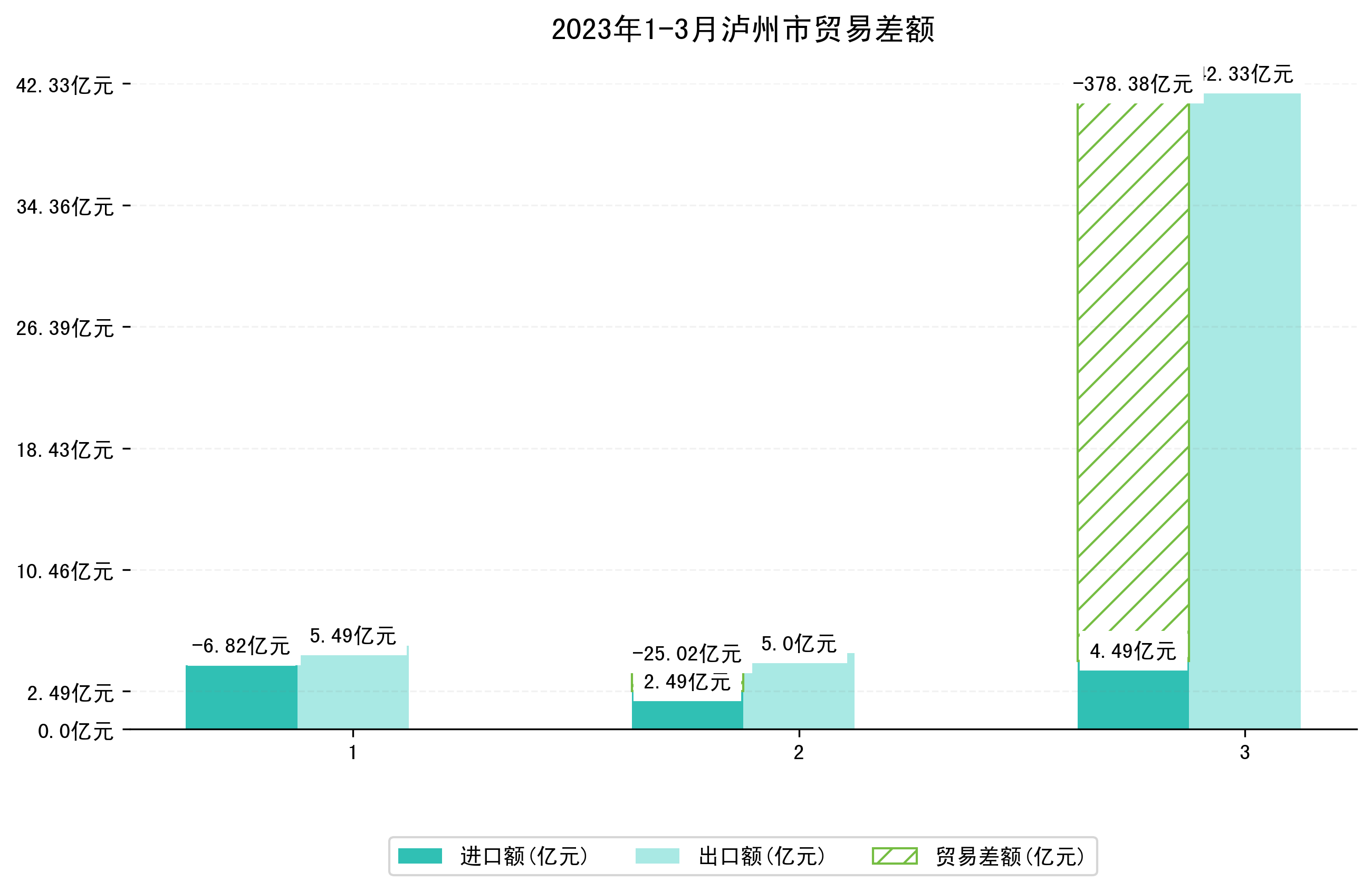 2023年3月泸州市进出口总额及进出口差额统计分析