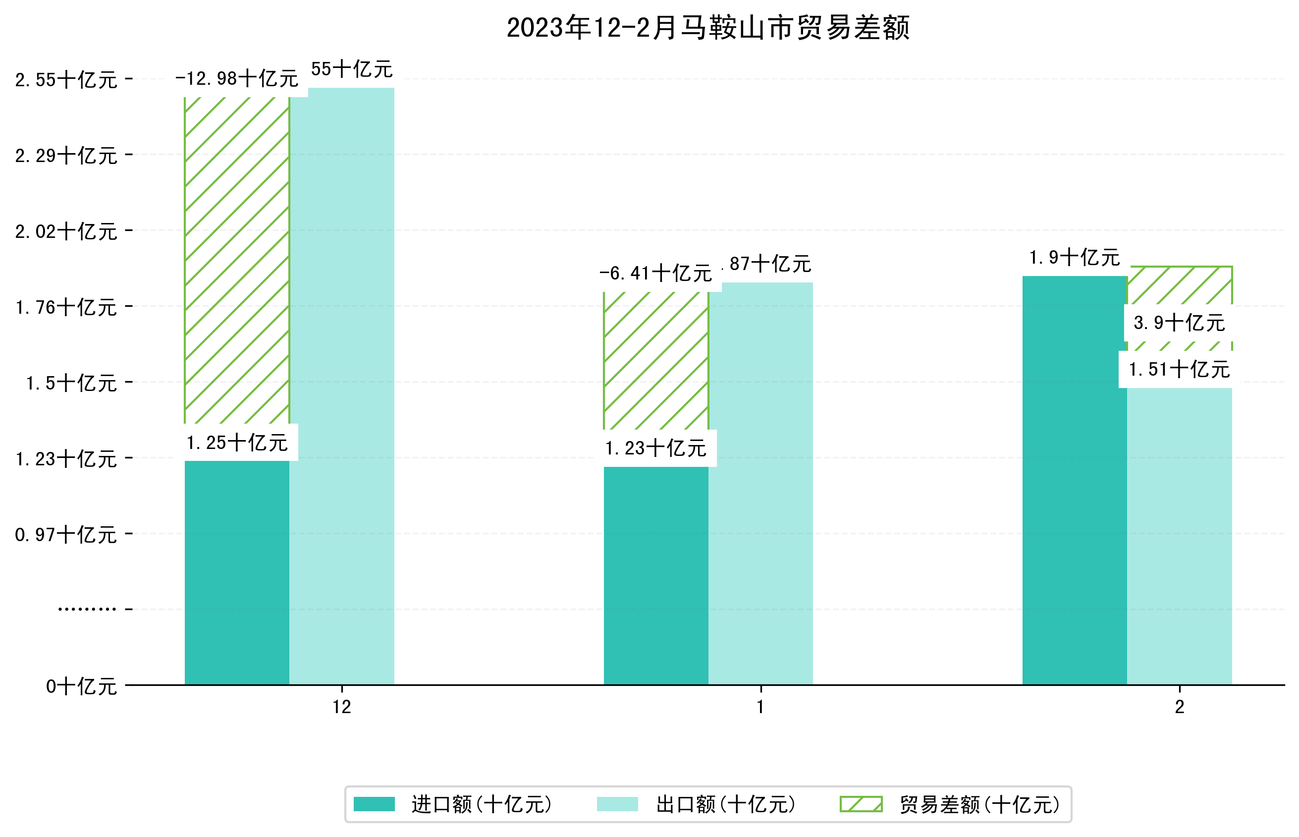 2023年2月马鞍山市进出口总额及进出口差额统计分析
