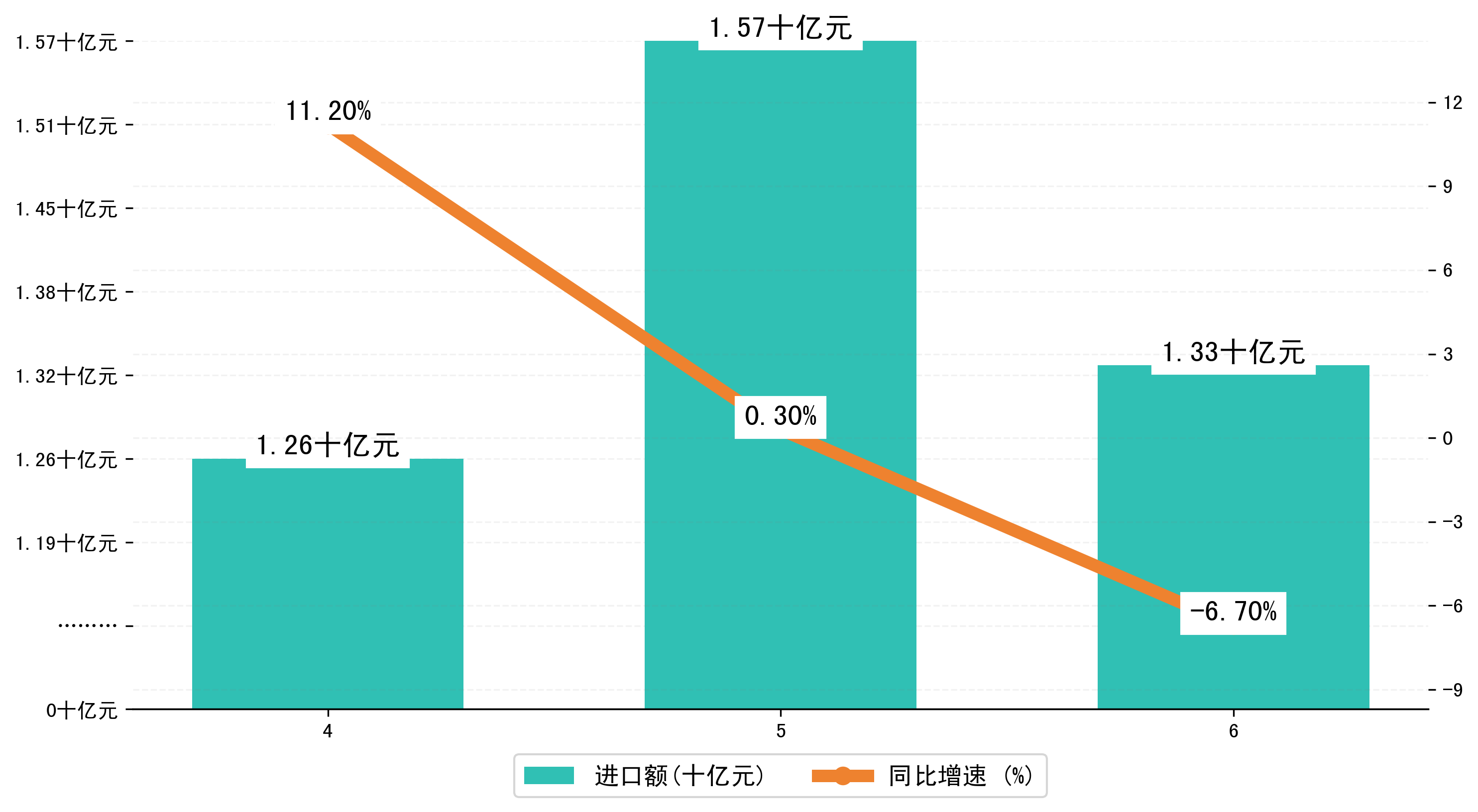 以人民币计,2024年6月马鞍山市进口额为13,2764.4206万元,相比上月减少了2,4562.7239万元;相比上年同期减少了6,9793.6317万元,同比减少了-6.70%。