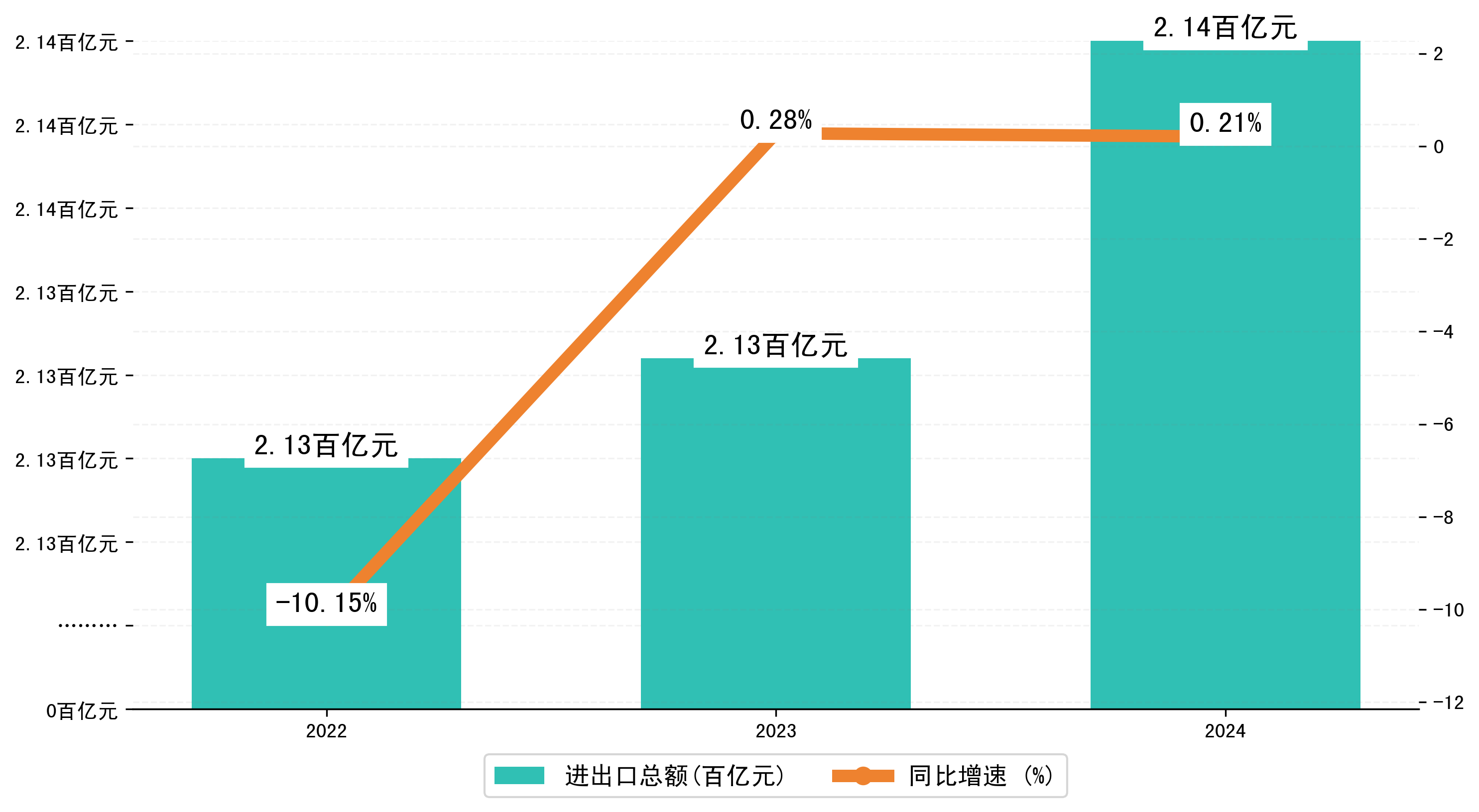 以人民币计,2024年1-6月马鞍山市进出口总额为213,7810.6401万元,相比上年同期增加了4529.8867万元,同比增加了5.20%。