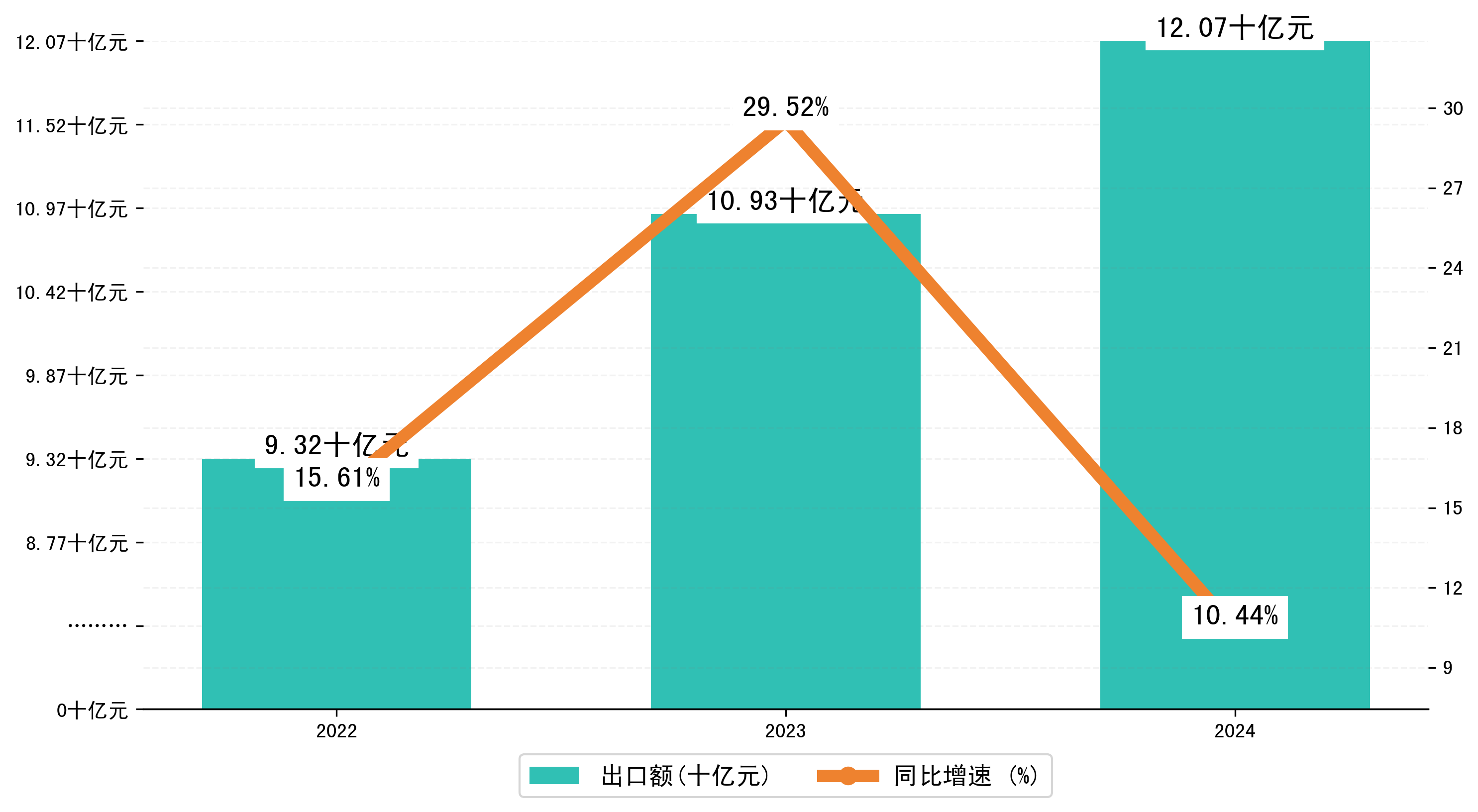 以人民币计,2024年1-6月马鞍山市出口额为120,7040.2485万元,相比上年同期增加了11,4104.4083万元,同比增加了16.80%。