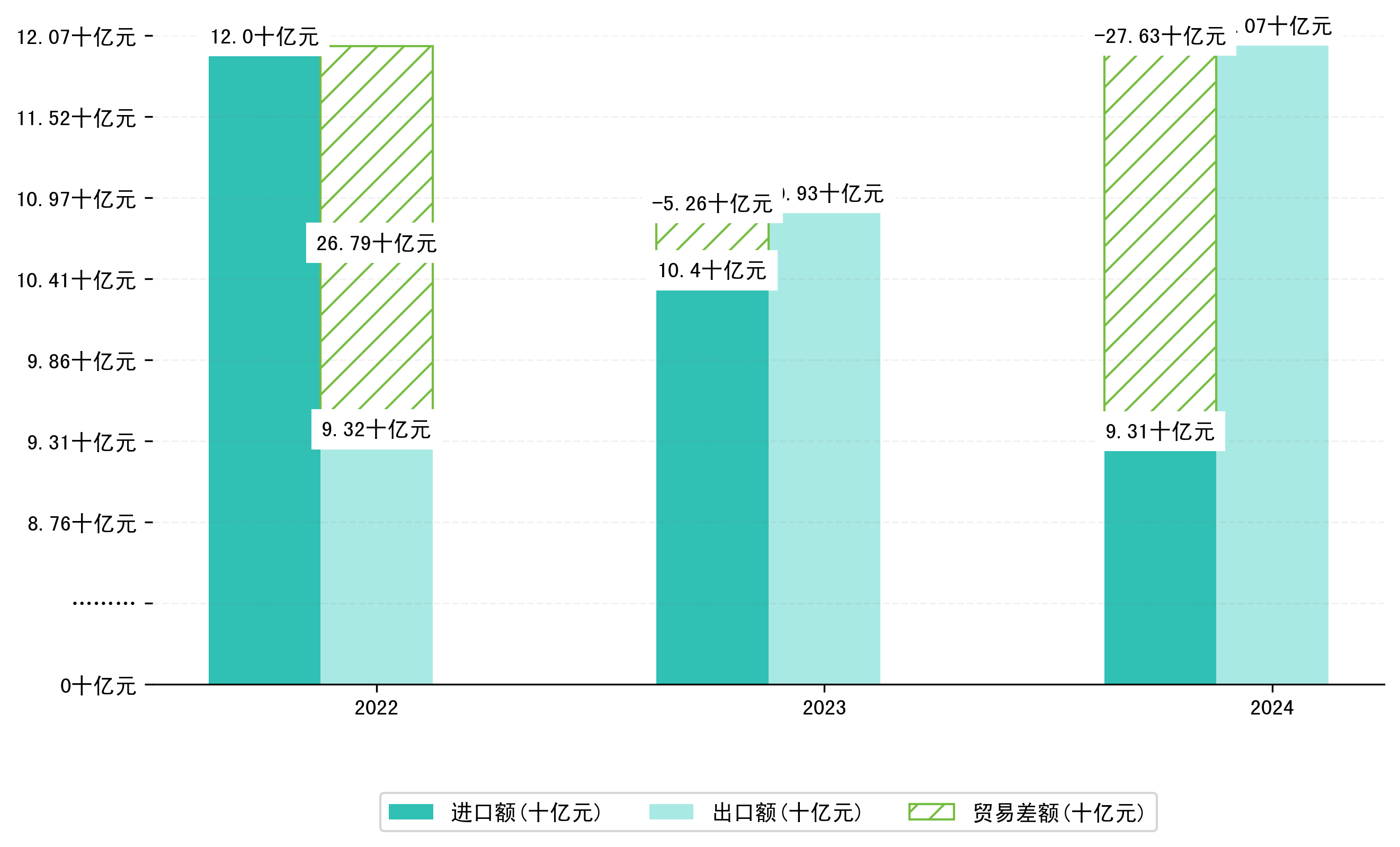 以人民币计,2024年1-6月马鞍山市贸易差额为27,6269,8569万元(贸易顺差),相比上年同期增加了22,3678,9299万元,同比增加425.32%。