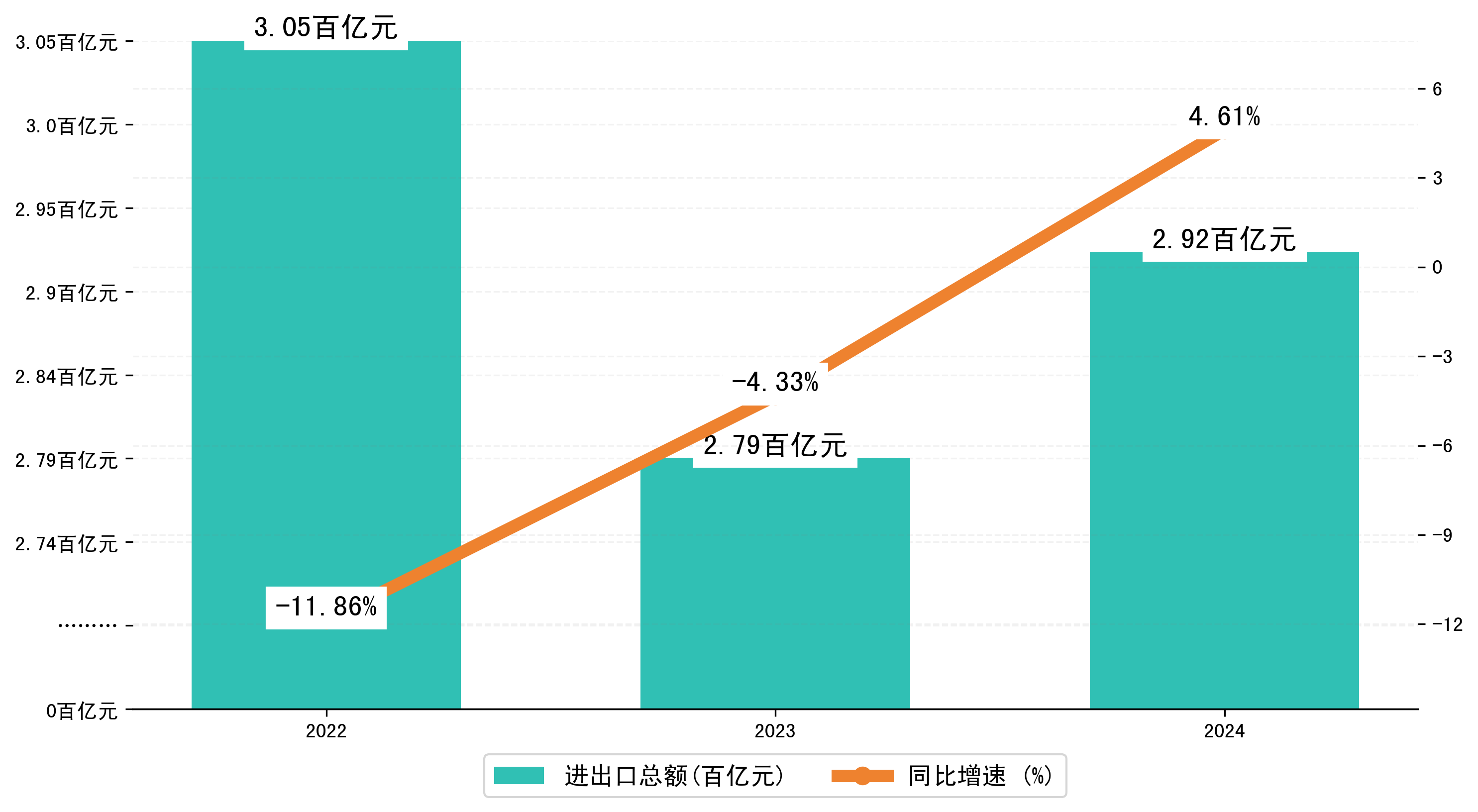 以人民币计,2024年1-8月马鞍山市进出口总额为292,0188.2033万元,相比上年同期增加了12,8647.0556万元,同比增加了8.40%。