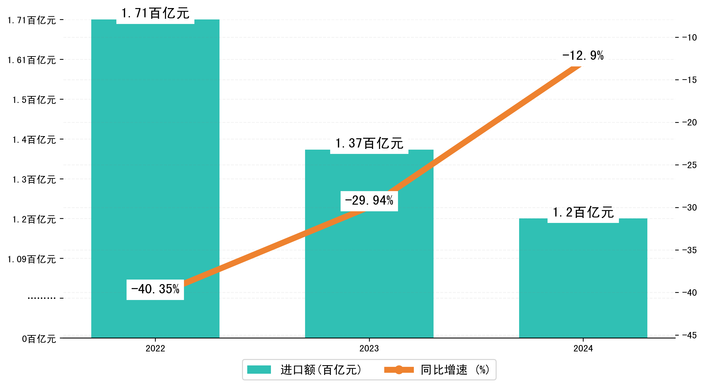 以美元计,2024年1-8月马鞍山市进口额为16,8297.777万美元,相比上年同期减少了2,9459.9678万美元,同比减少-12.40%。