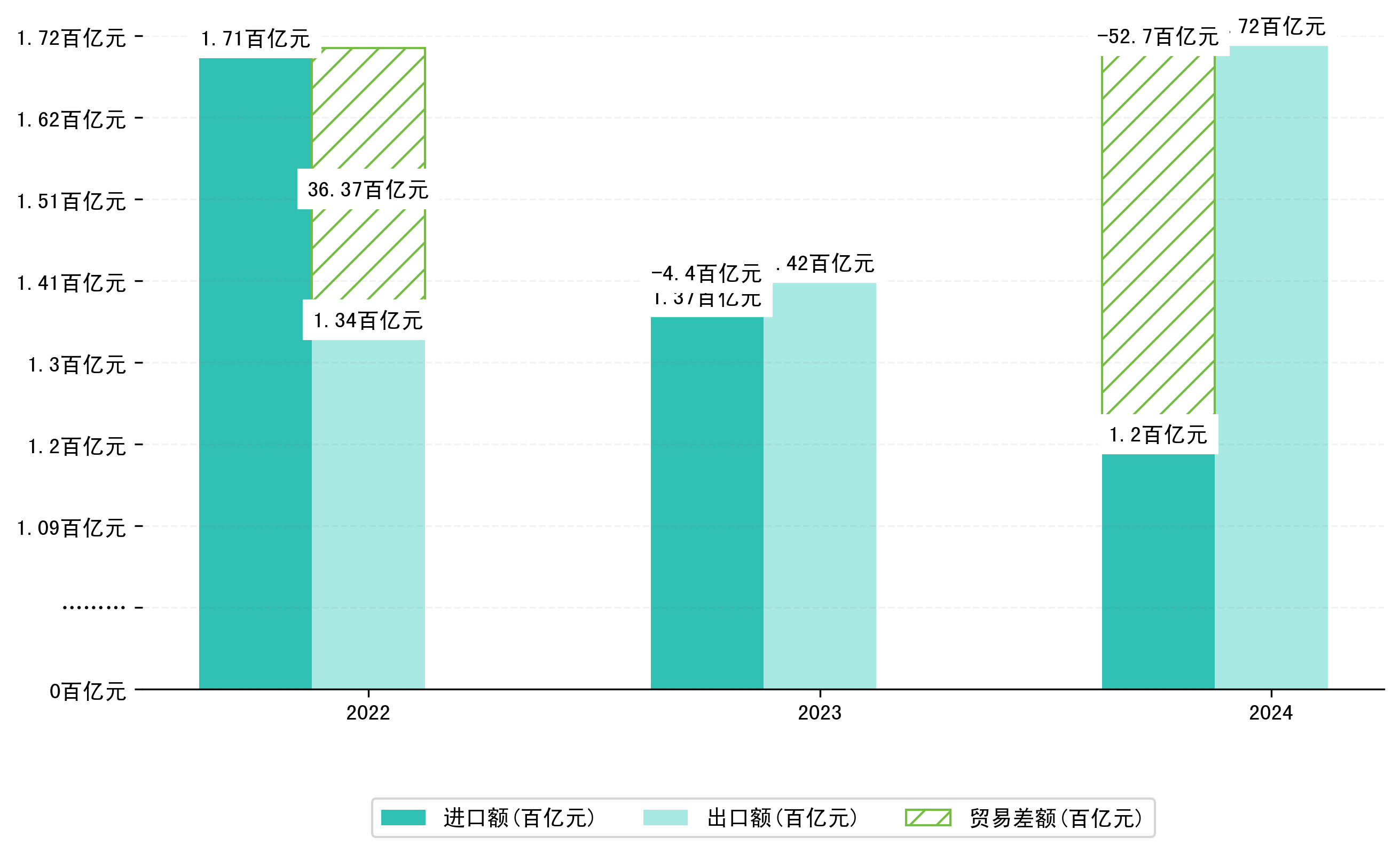 以人民币计,2024年1-8月马鞍山市贸易差额为52,7019,5137万元(贸易顺差),相比上年同期增加了48,3015,0270万元,同比增加1097.65%。