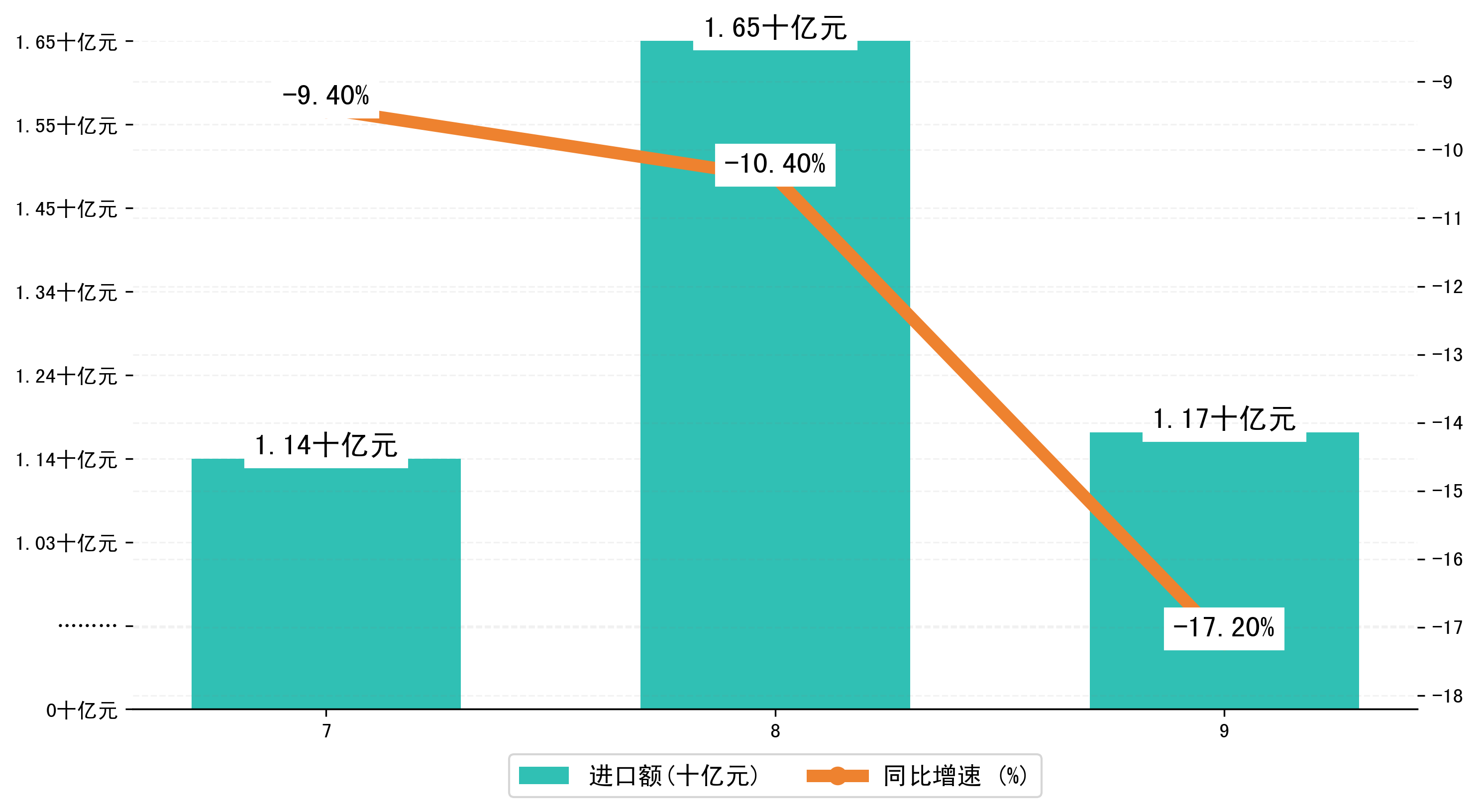 以人民币计,2024年9月马鞍山市进口额为11,6857.9803万元,相比上月减少了4,8412.3127万元;相比上年同期减少了12,9277.9921万元,同比减少了-17.20%。