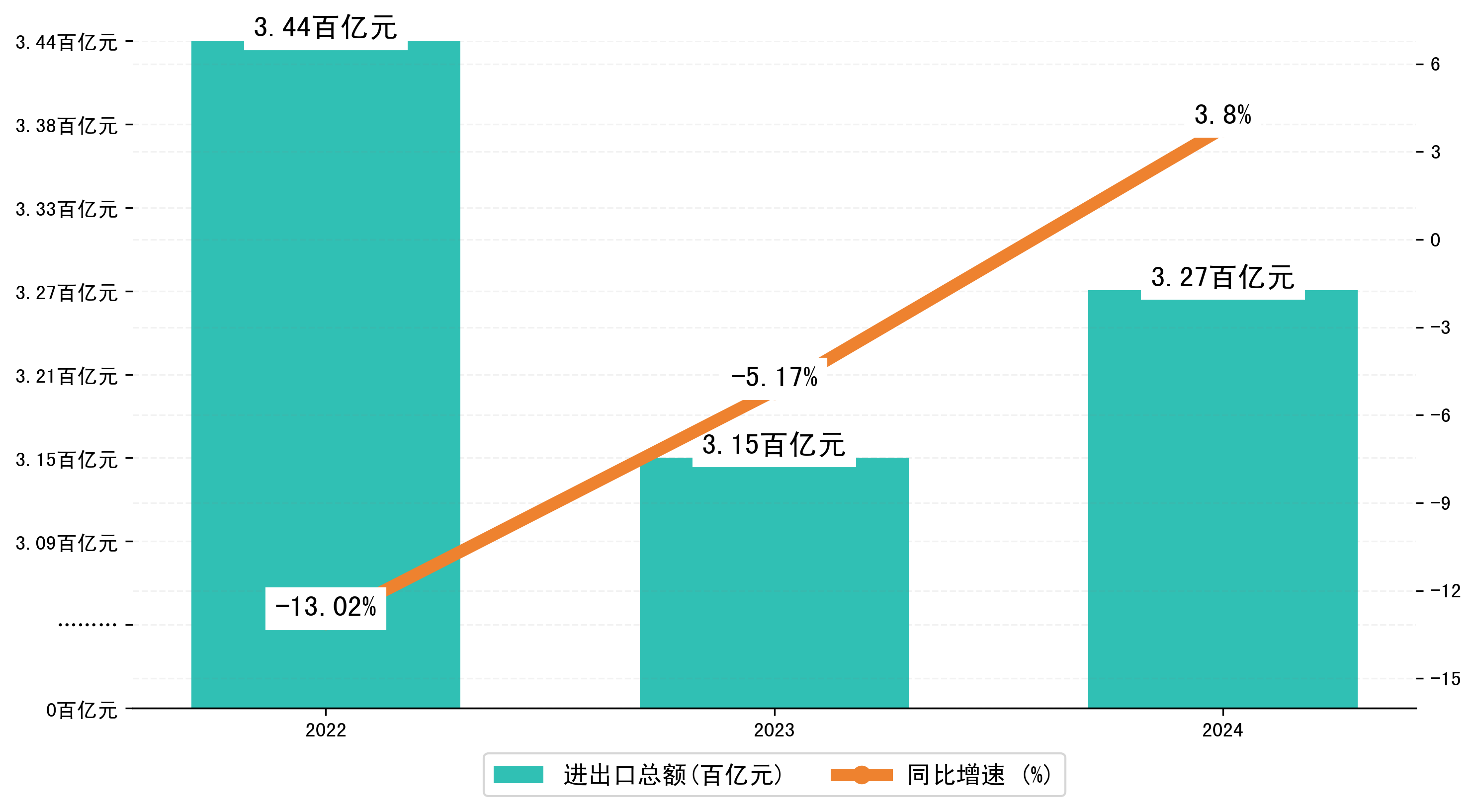 以人民币计,2024年1-9月马鞍山市进出口总额为326,6163.273万元,相比上年同期增加了11,9543.4663万元,同比增加了4.30%。