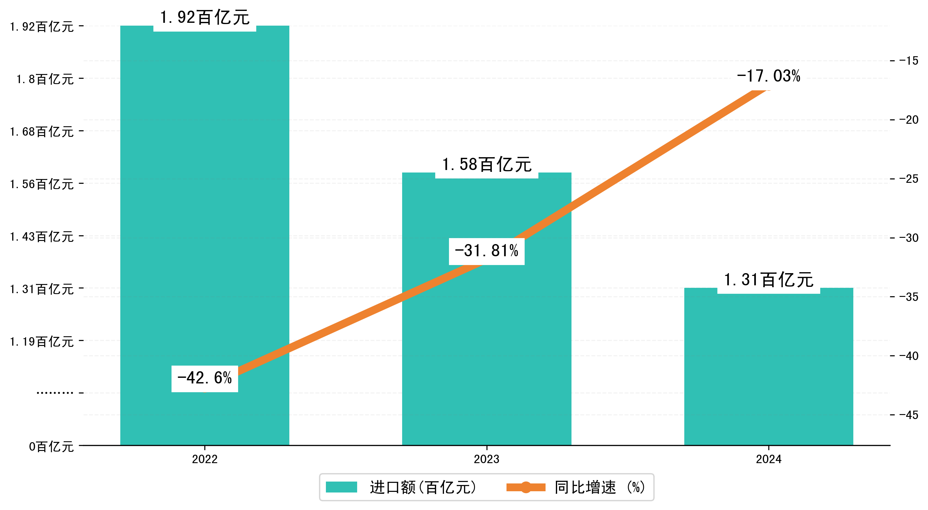 以人民币计,2024年1-9月马鞍山市进口额为131,2303.4472万元,相比上年同期减少了26,9341.5925万元,同比减少了-17.20%。