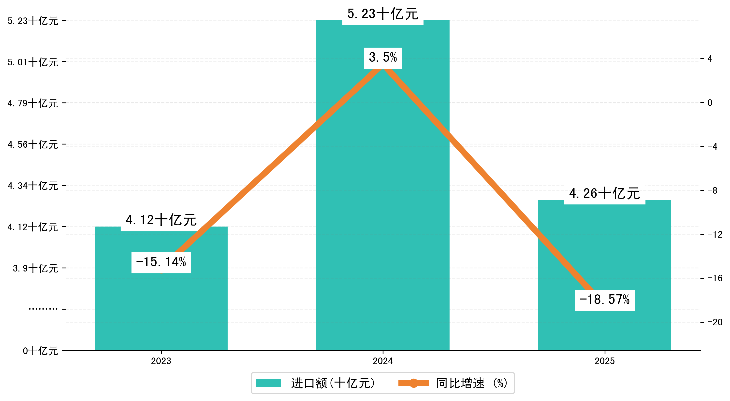以人民币计,2025年1-3月马鞍山市进口额为42,6228.677万元,相比上年同期减少了9,7209.6942万元,同比减少了-16.80%。