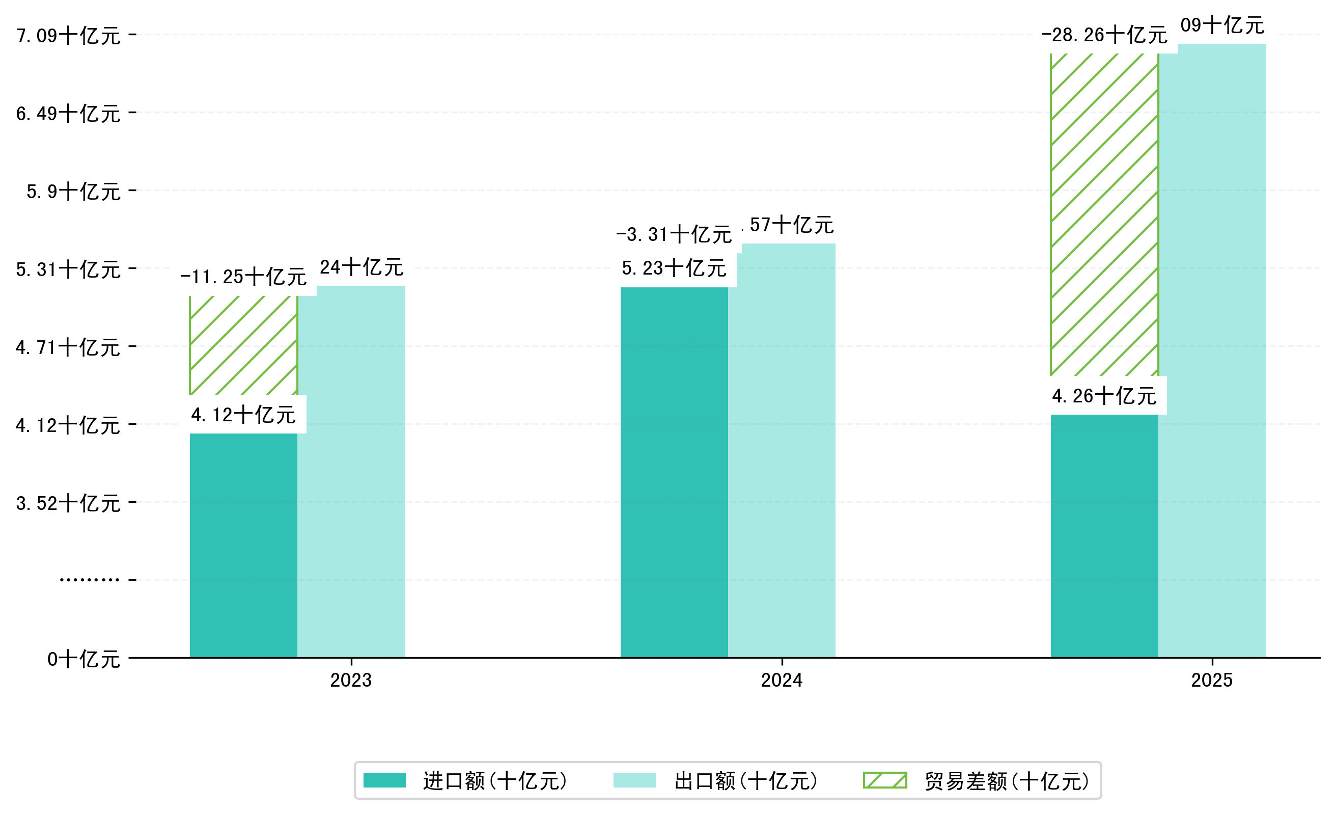 以美元计,2025年1-3月马鞍山市贸易差额为3,9344,9054万美元(贸易顺差),相比上年同期增加了3,4639,4116万美元,同比增加736.15%。