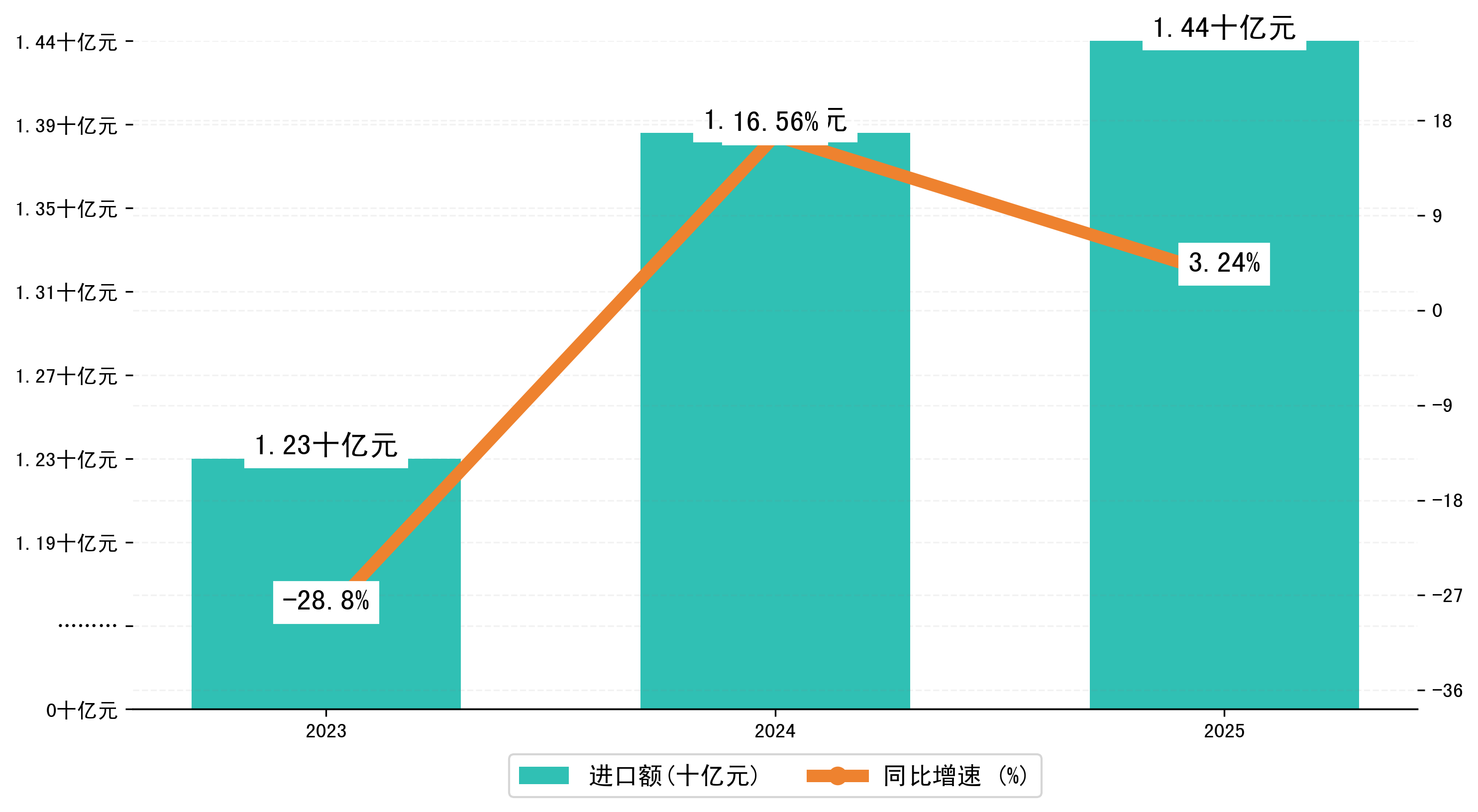 以人民币计,2025年1-1月马鞍山市进口额为14,3563.892万元,相比上年同期增加了4503.2778万元,同比增加了1.70%。