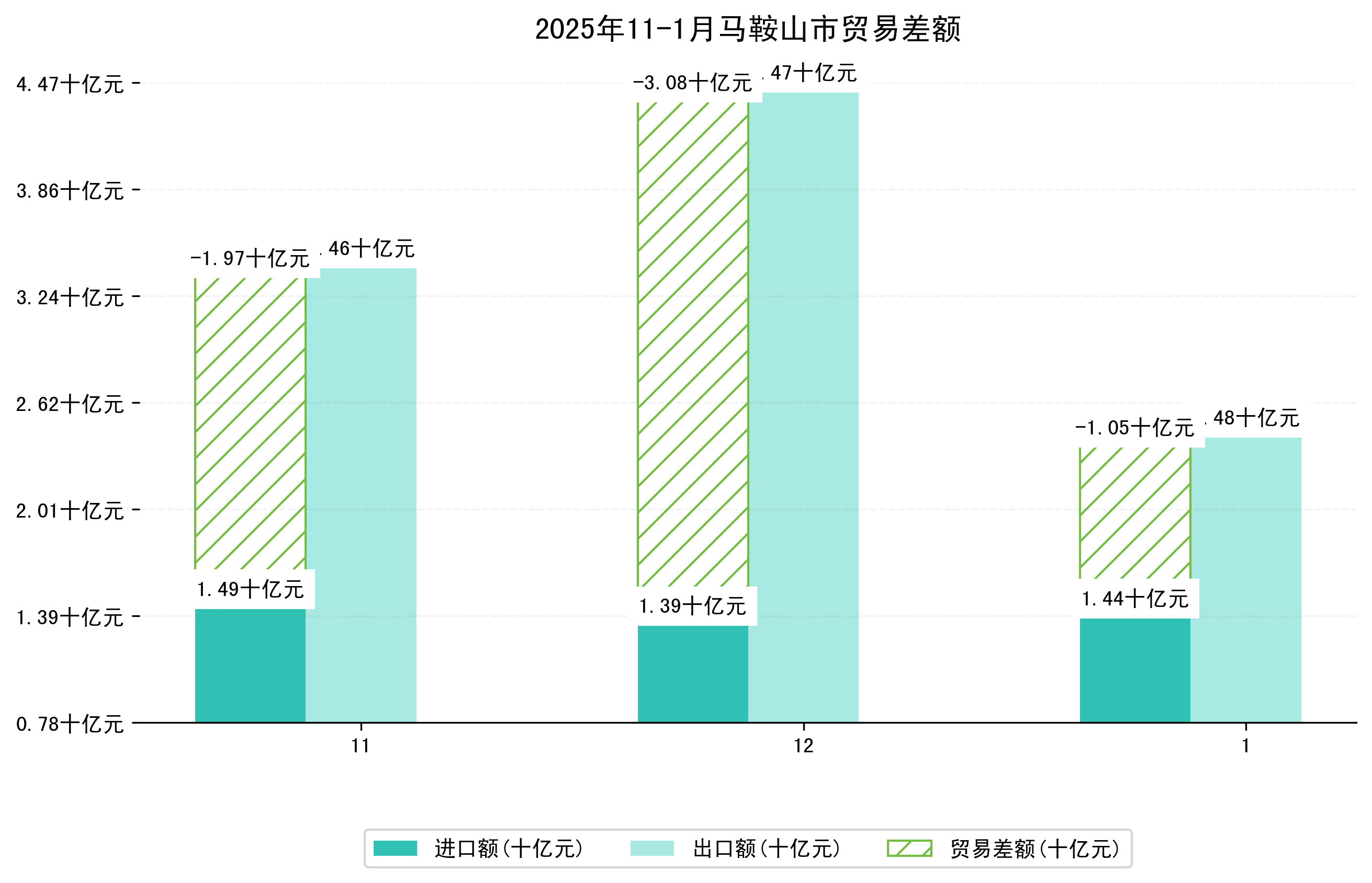 2025年1月马鞍山市进出口总额及进出口差额统计分析