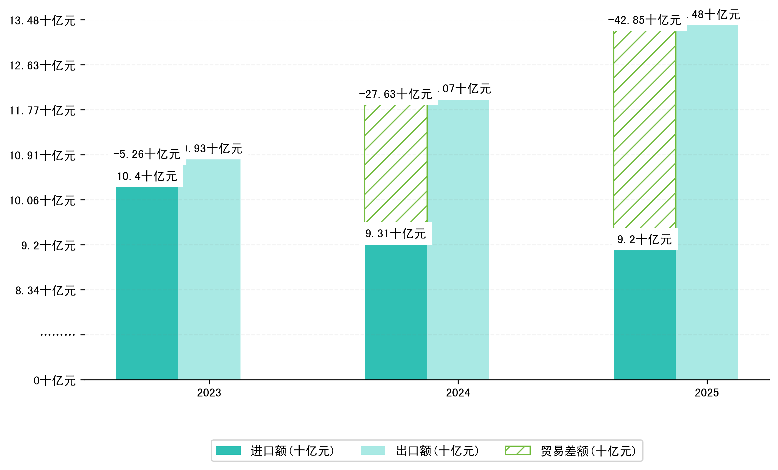 以人民币计,2025年1-6月马鞍山市贸易差额为42,8493,7935万元(贸易顺差),相比上年同期增加了15,2223,9366万元,同比增加55.1%。