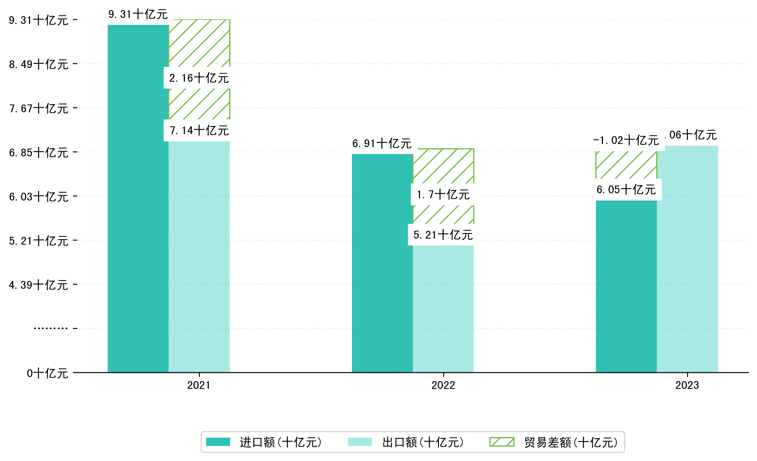 以人民币计,2023年4月马鞍山市贸易差额为6713,5829万元(贸易逆差),相比上月减少了9,4335,8573万元,即1,3878,9956万美元;相比上年同期增加了6,1152,2931万元,同比增加-90.11%。