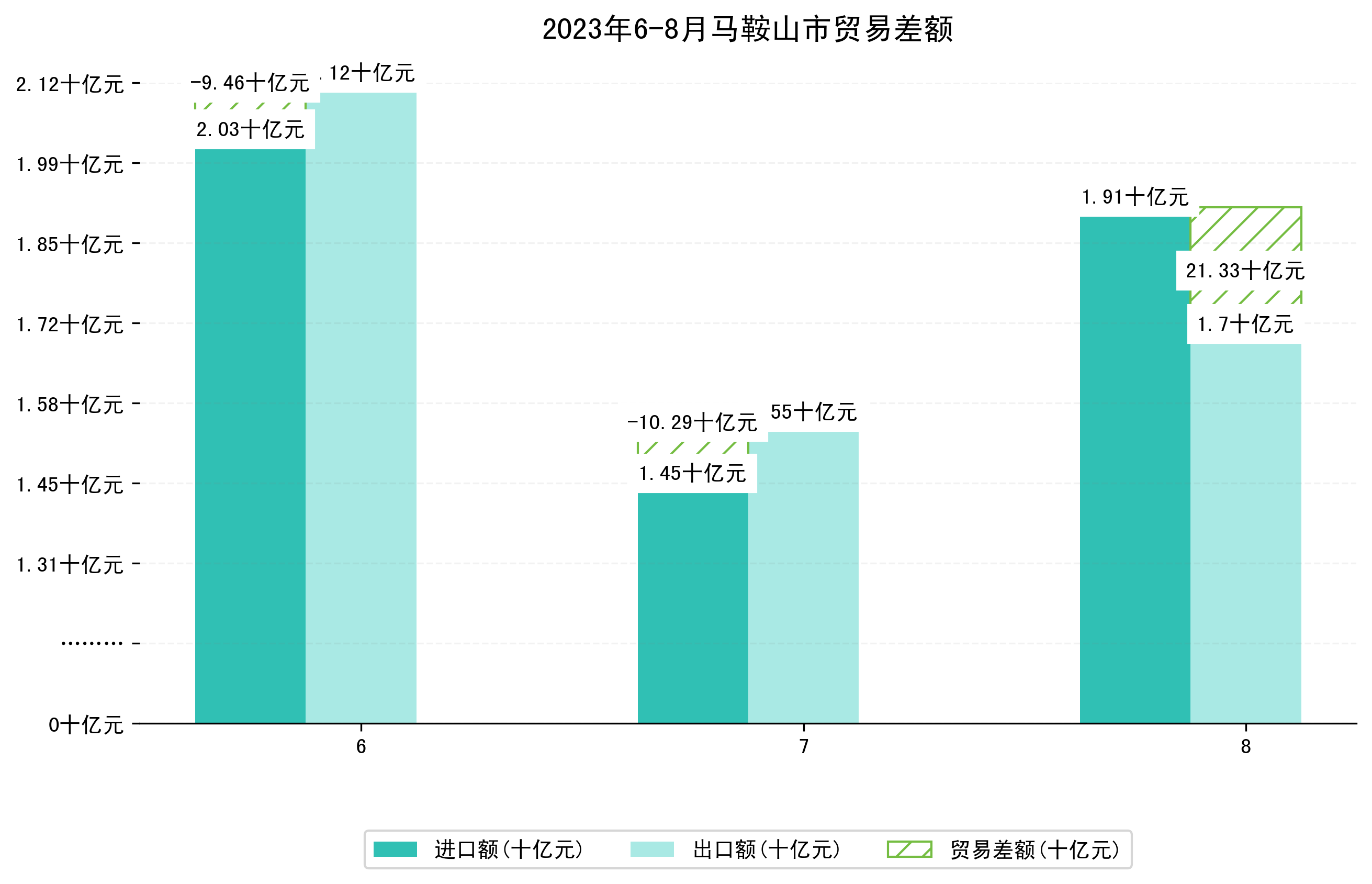 (图一:2023年6-8月马鞍山市进出口总额)