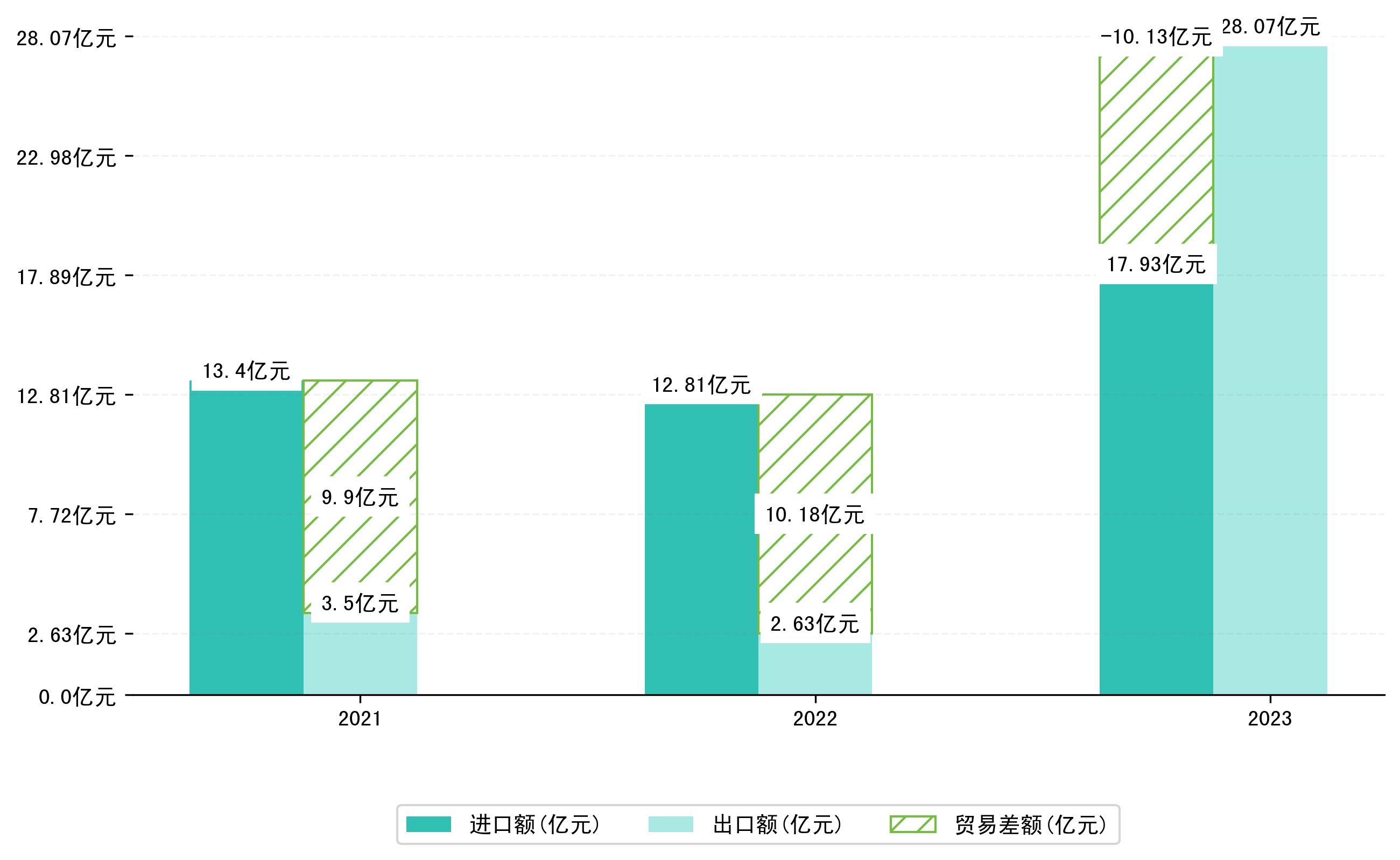 以人民币计,2023年2月满洲里市贸易差额为3,9667,0891万元(贸易顺差),相比上月减少了2,1990,1599万元,即2976,7915万美元;相比上年同期增加了8,5895,5626万元,同比增加-185.81%。