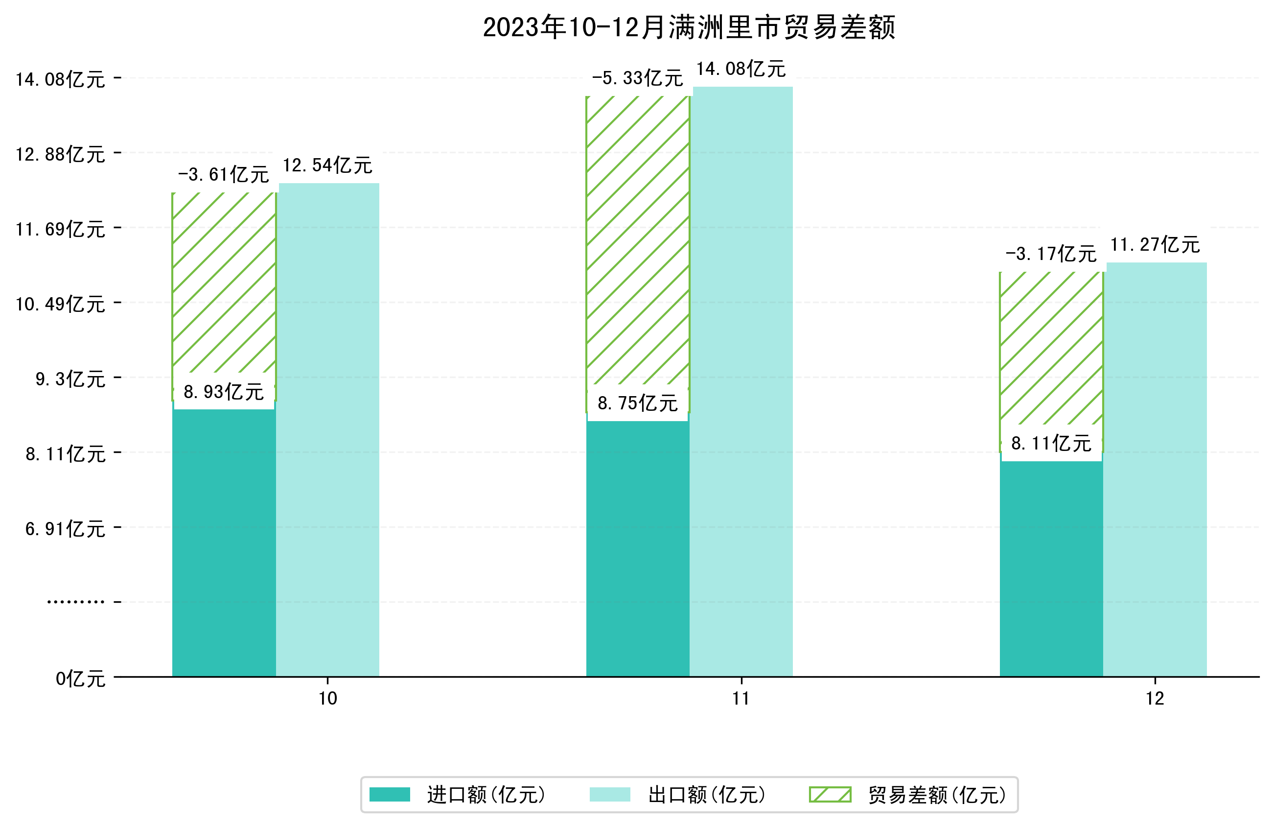 2023年12月满洲里市进出口总额及进出口差额统计分析