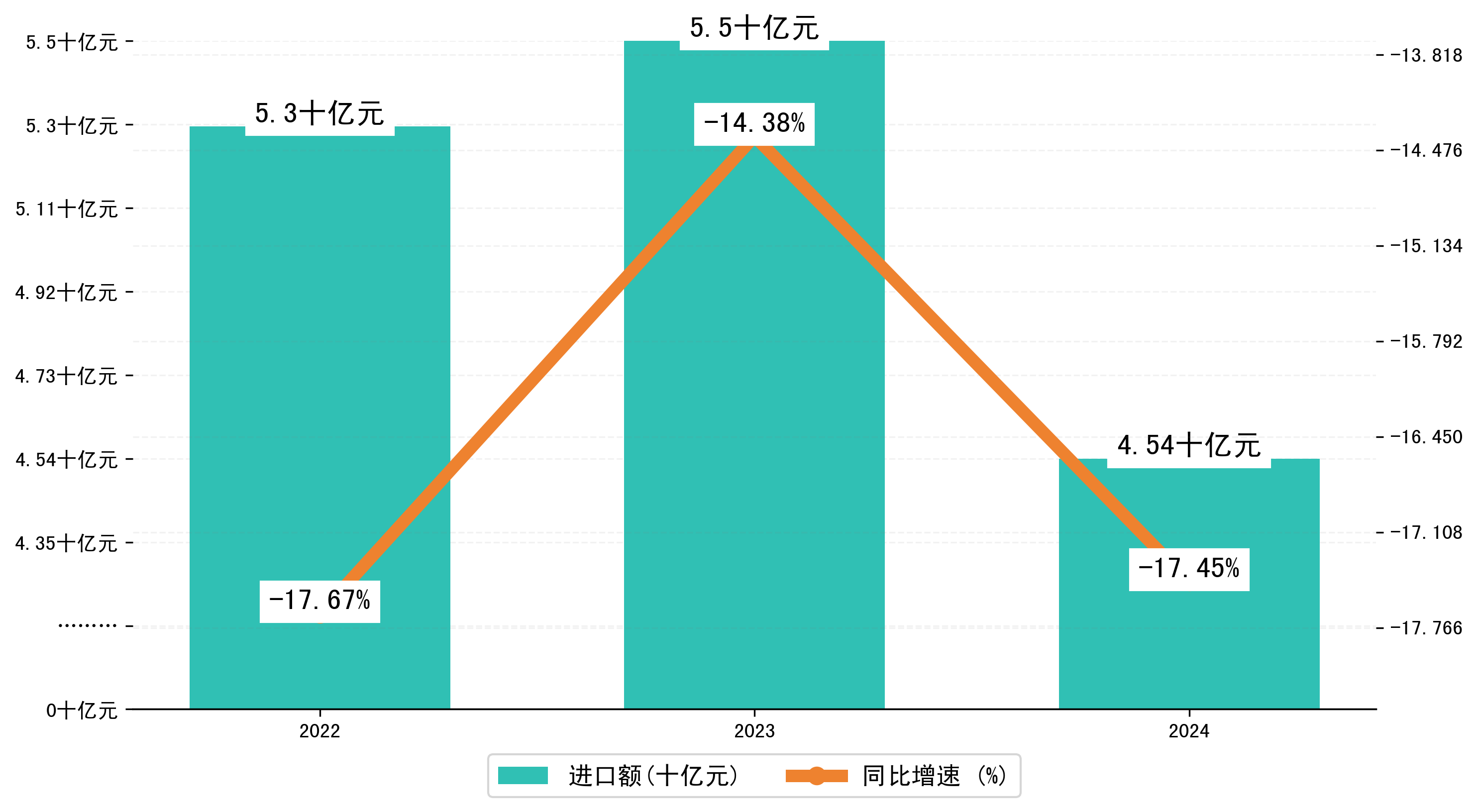 以人民币计,2024年1-7月满洲里市进口额为45,3702.483万元,相比上年同期减少了9,5882.6367万元,同比减少了-17.50%。
